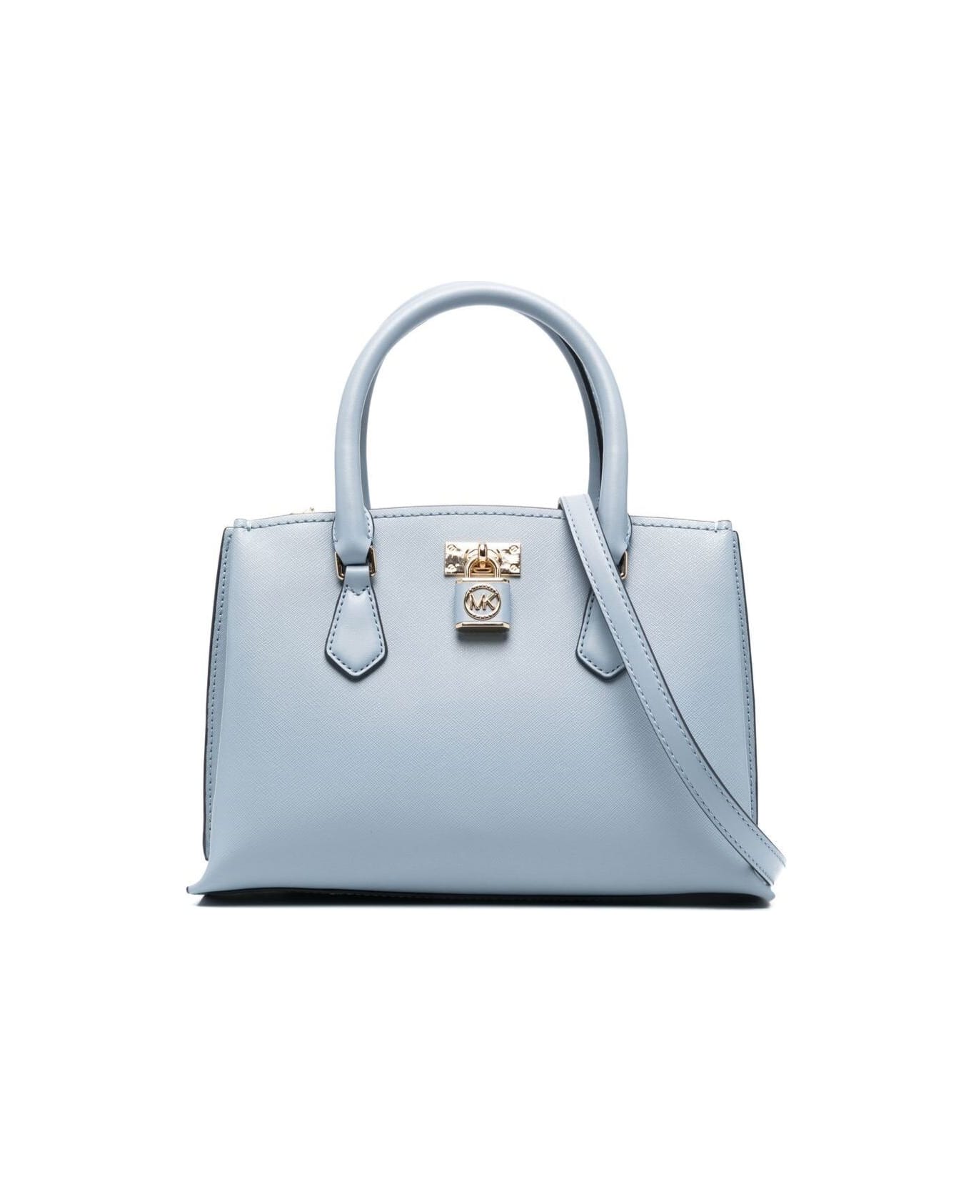 Light Blue Ruby Messenger Bag With Lock Detailing In Saffiano Leather Woman