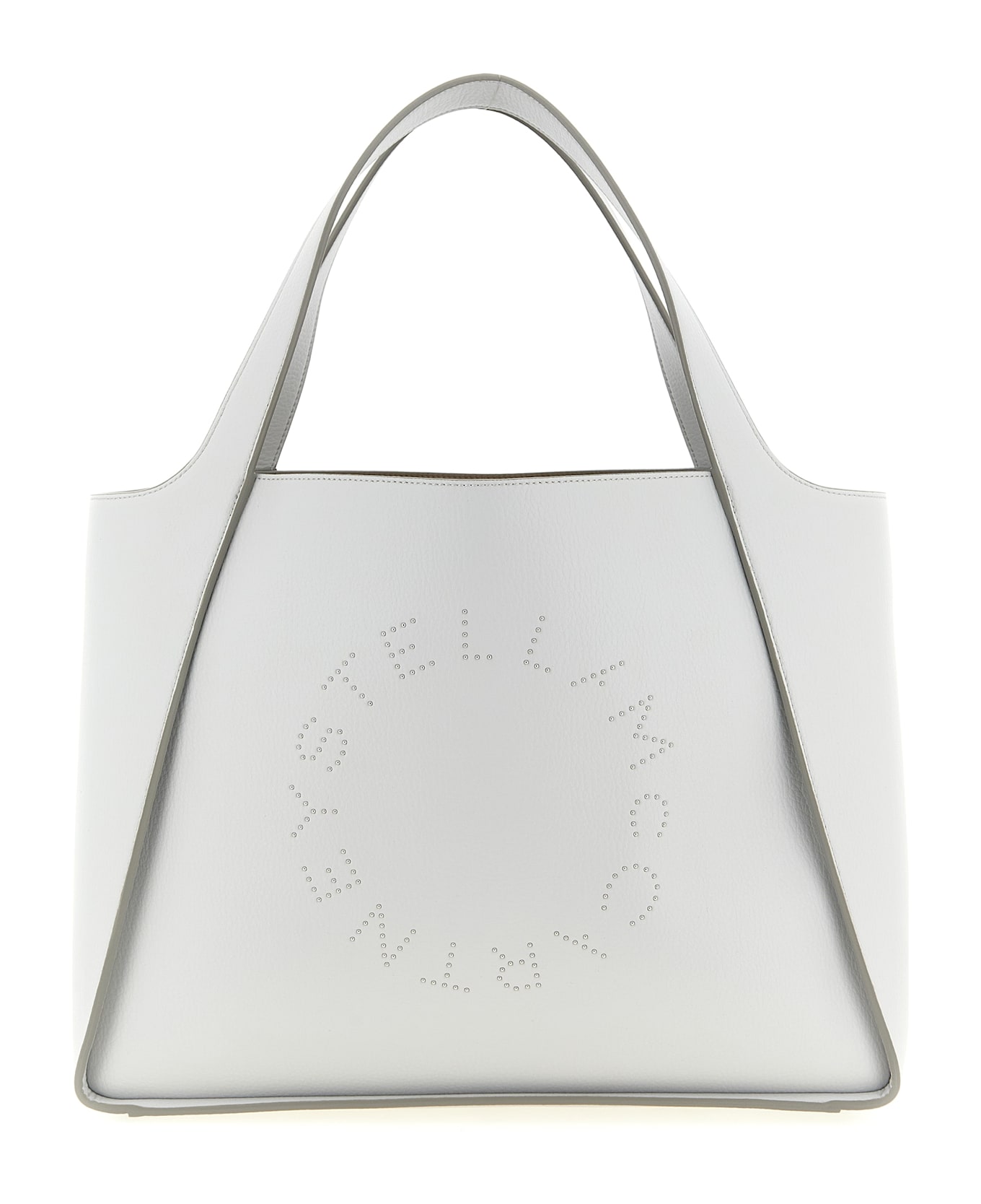 'Logo Tote' shopping bag in Grainy Alter Mat, circular logo with metal studs on the front, double fixed handle, lining, removable clutch. SUSTAINABLE: Products that do not use leather respecting cruelty free ethics.