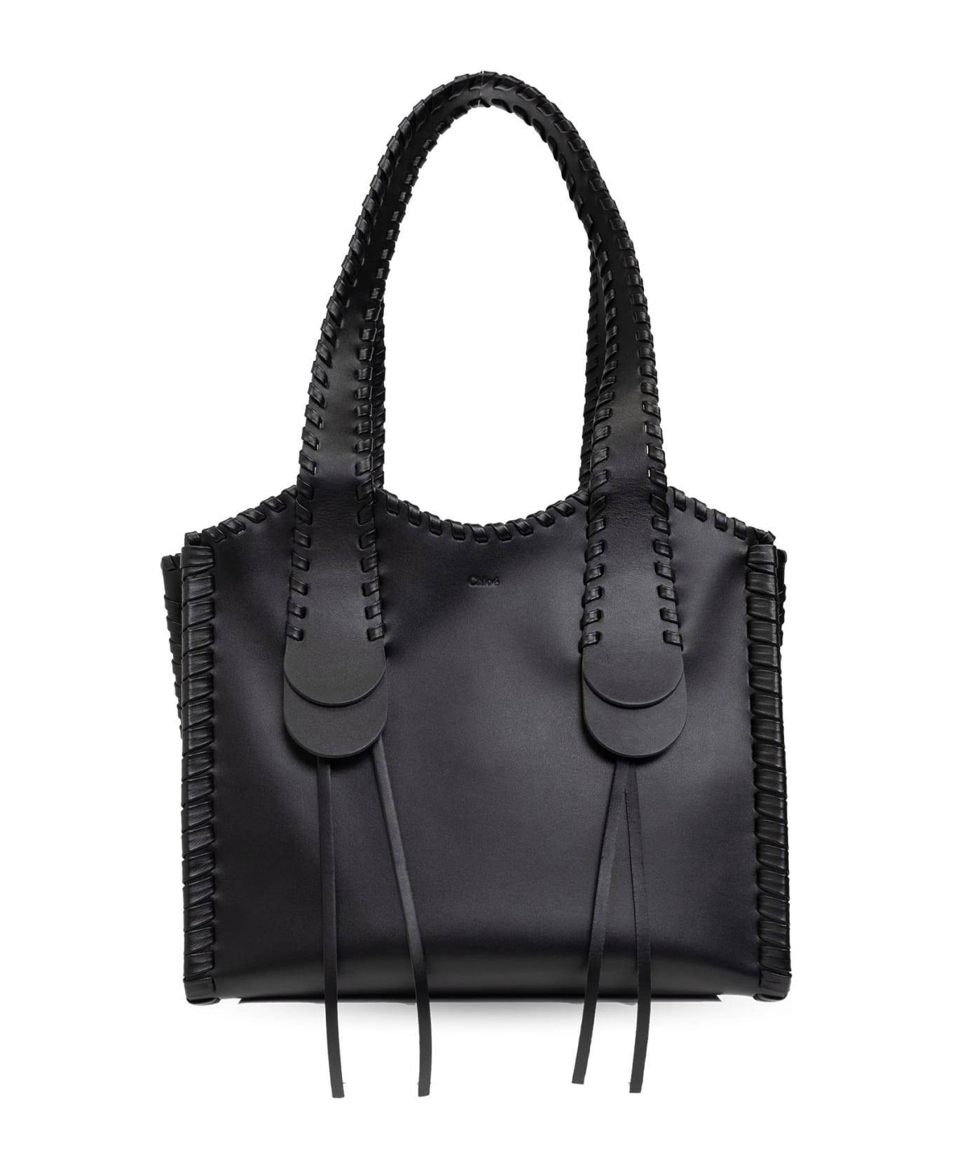 Black 'Many Medium' shopper bag from Chloe. Made of calf leather, this model fastens with a zip and is decorated with an embossed logo, stitches and fringes. It is complete with two half-round straps, gold-tone metal hardware and one internal compartment Composition: 100% Calf Leather