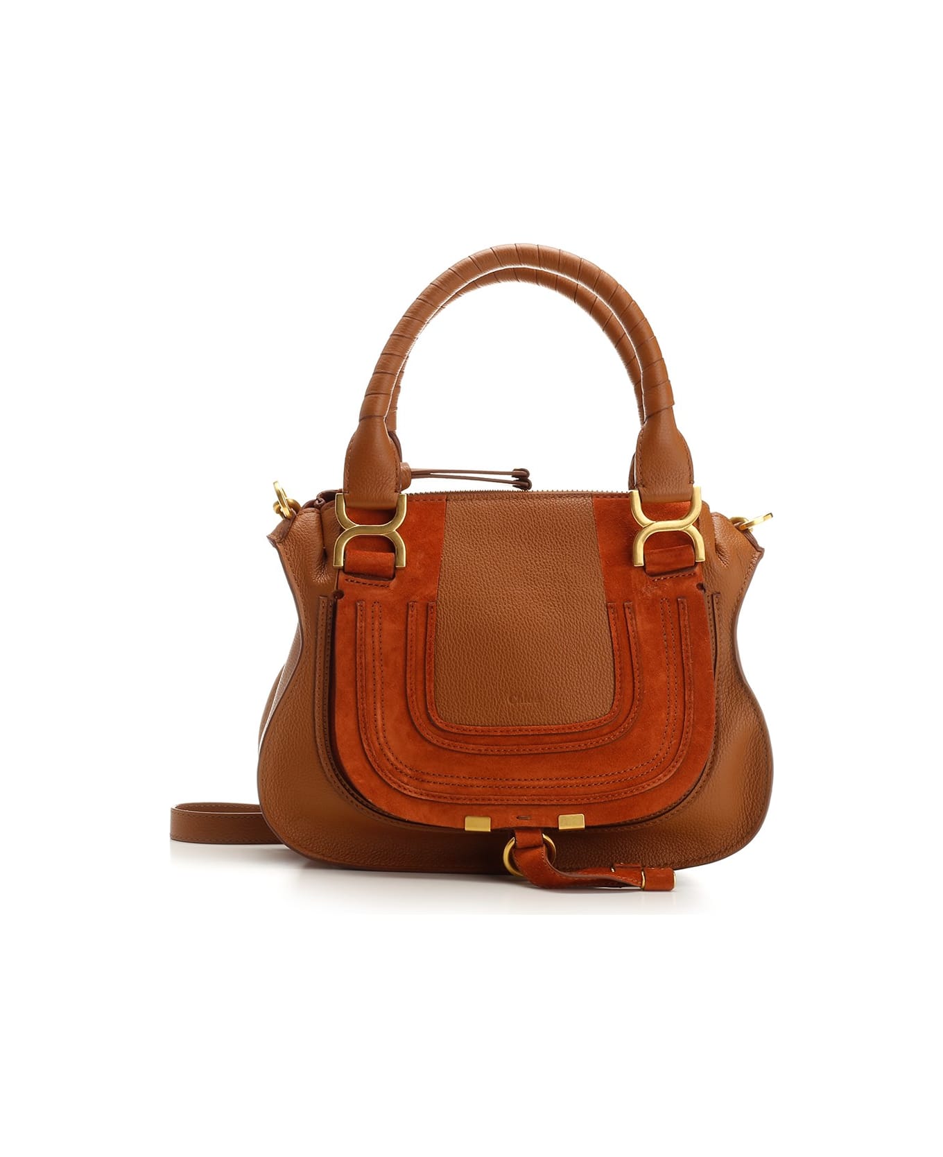'Marcie' medium handbag from Chlo? in tan leather with suede inserts and complete with adjustable and removable shoulder strap, one main compartment, one internal flat pocket. Composition: SECONDARY MATERIAL: 100% LEATHER DOMESTIC CALF SPLIT BOS TAURUS Netherlands FARMED MAIN LINING: 100% LINEN