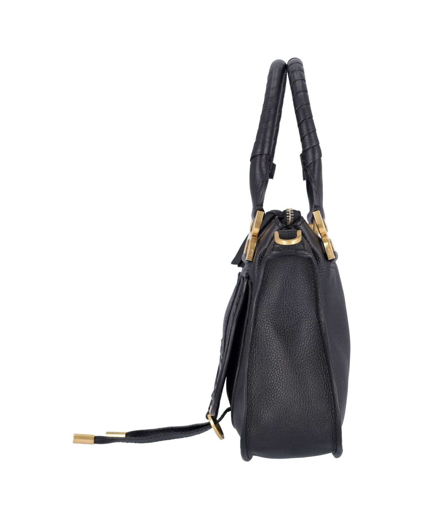 Chlo? 'Marcie' Small Hand Bag, grained leather, black color, double top braided handles, removable shoulder strap, zipper closure, front stitching detail, gold-colored hardware details, one front flap pocket, one interior compartment, one interior zipper pocket, one interior flat pocket.