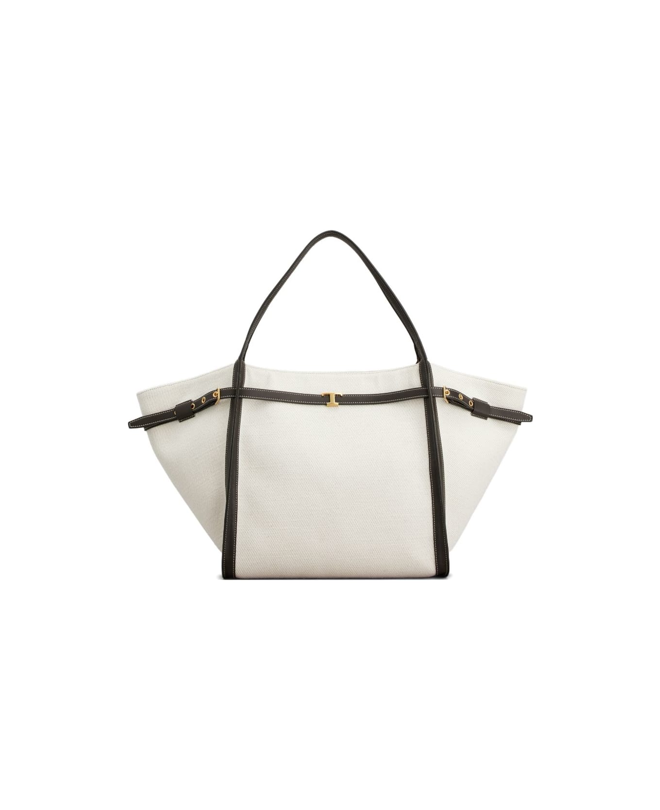 white brown trims top handle buckle detail internal slip pocket gold-tone hardware Composition: Outer: Linen/flax, 43% , Cotton, 40% , Calf Leather, 10% , Polyester, 7%