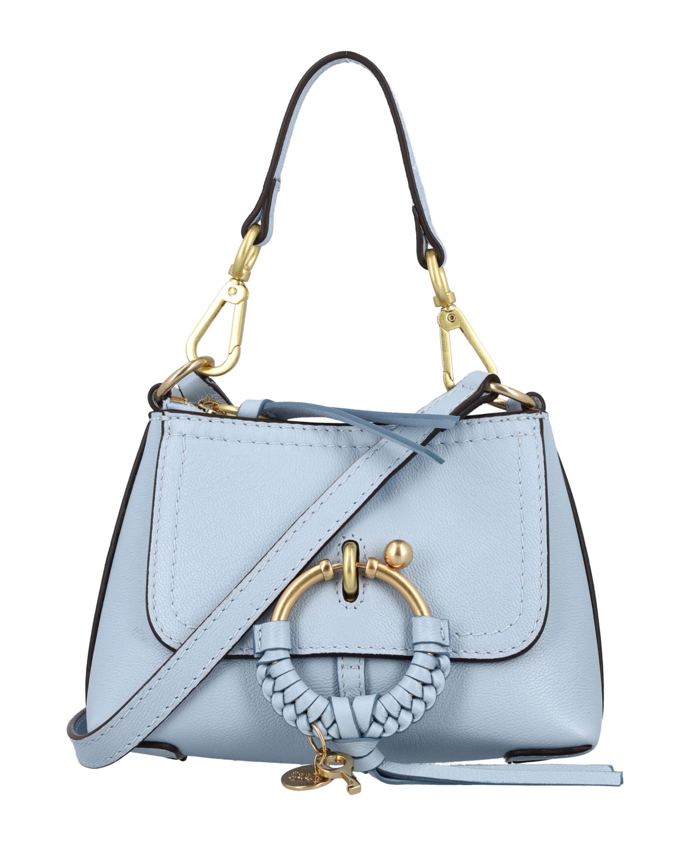 Grained Leather Mini Joan Cross-body Bag By See By Chloé. Featuring: Trapezoid Design Front Flap Braided O-ring With The Iconic See By Chloé Key And Medal Top Zip Closure Removable Handle Leather Strap Gold Brass Finishing Cotton Lining Main Compartment With Card Slot Height: 12cm Width: 20cm Depth: 9cm