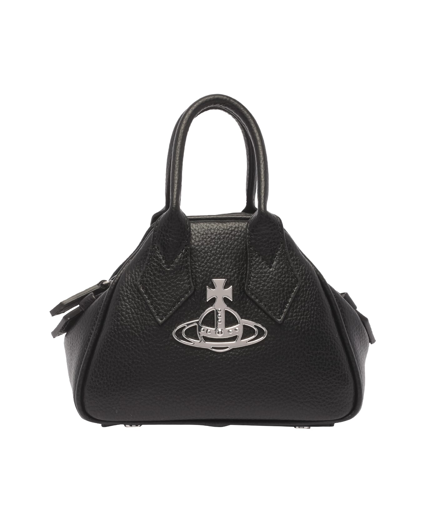 Vivienne Westwood black Yasmin hand bag, zip closure, inner open pocket, double handles, inner open pocket, embossed plaque logo, adjustable and removable shoulder strap, mini model Composition: 58% Recycled Polyester, 42% Polyester