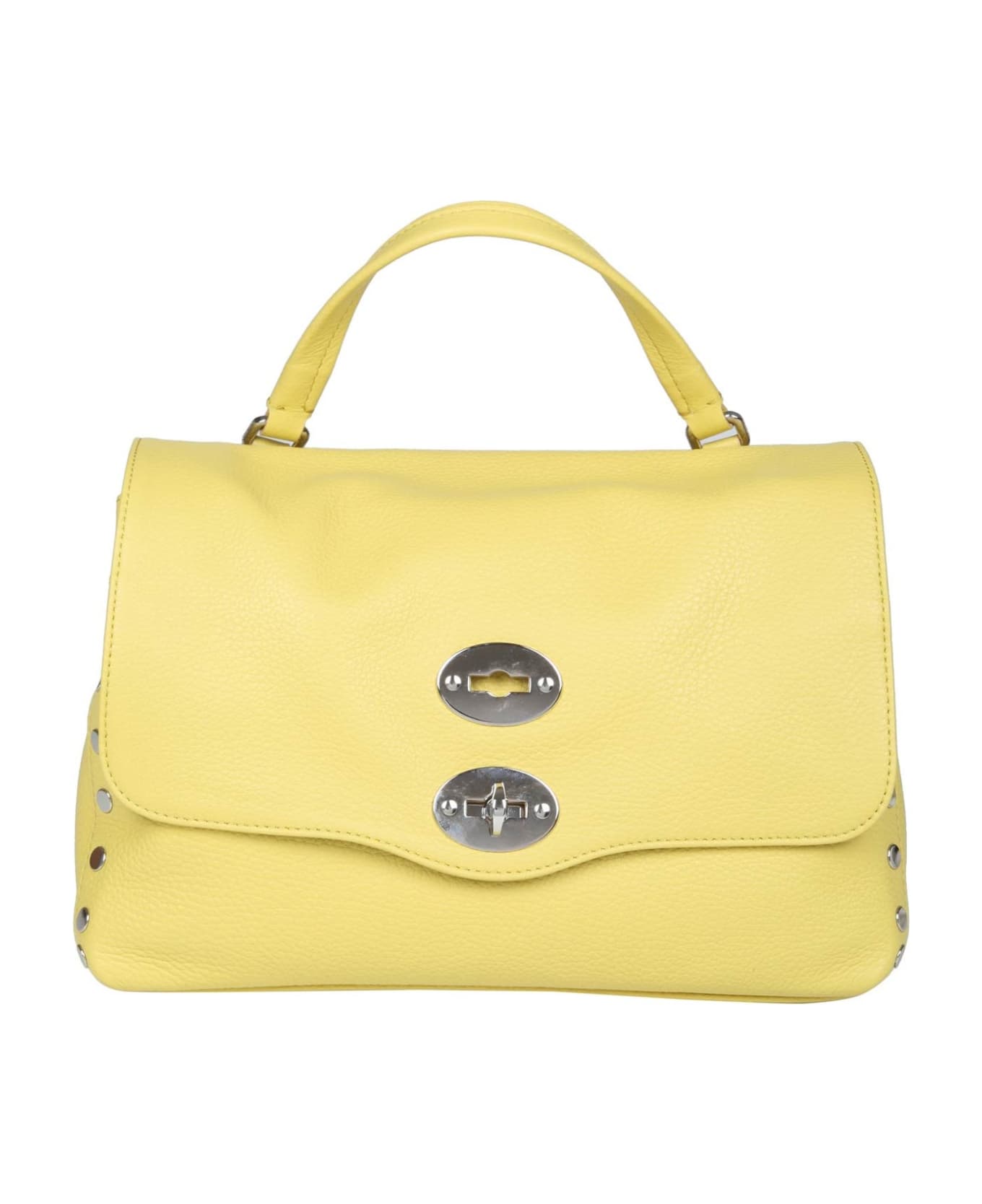 Postina bag that can be carried by hand, on the shoulder or over the shoulder yellow color single leather handle removable and adjustable leather shoulder strap flap with turn lock closure internal split leather lining metal feet at the base dimensions: length 19 cm height 14 cm depth 10 cm made in italy