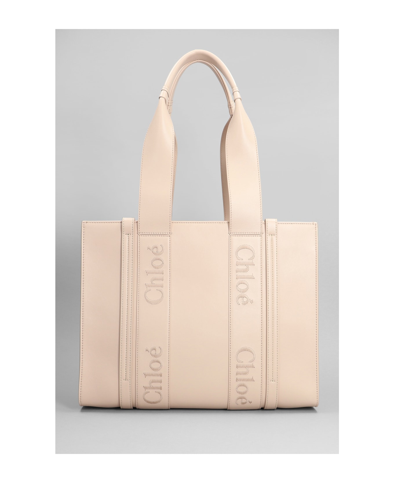 Tote in rose-pink leather, double handle, logo bands, Made in Italy, 100% leather, Height 260 mm, Width 370 mm