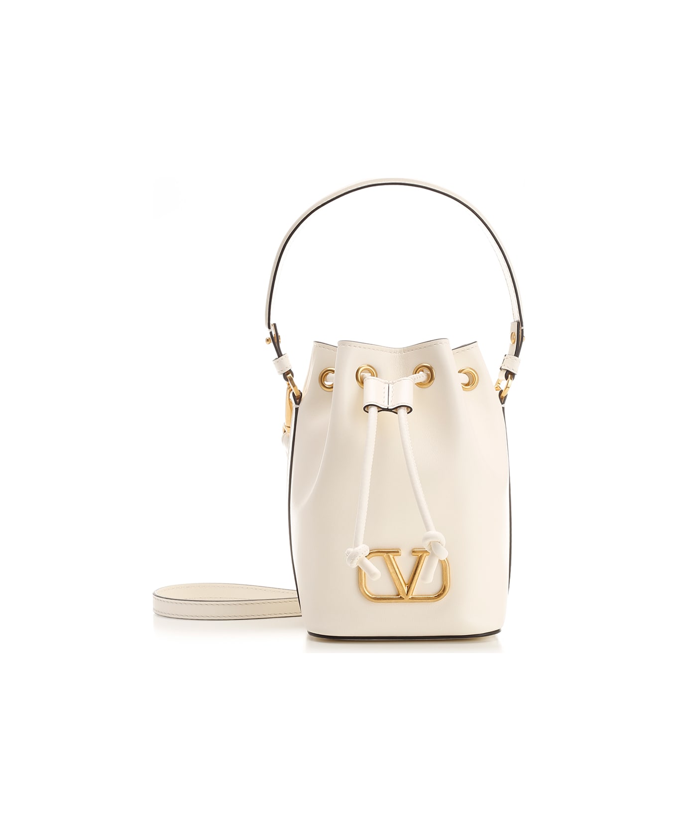'V Logo' mini bucket bag in ivory nappa from Valentino Garavani, with drawstring, detachable shoulder strap, nappa interior. Composition: AN100% EXTERNAL MATERIAL AN LAMBSKIN LEATHER - OVIS ARIES ARIES