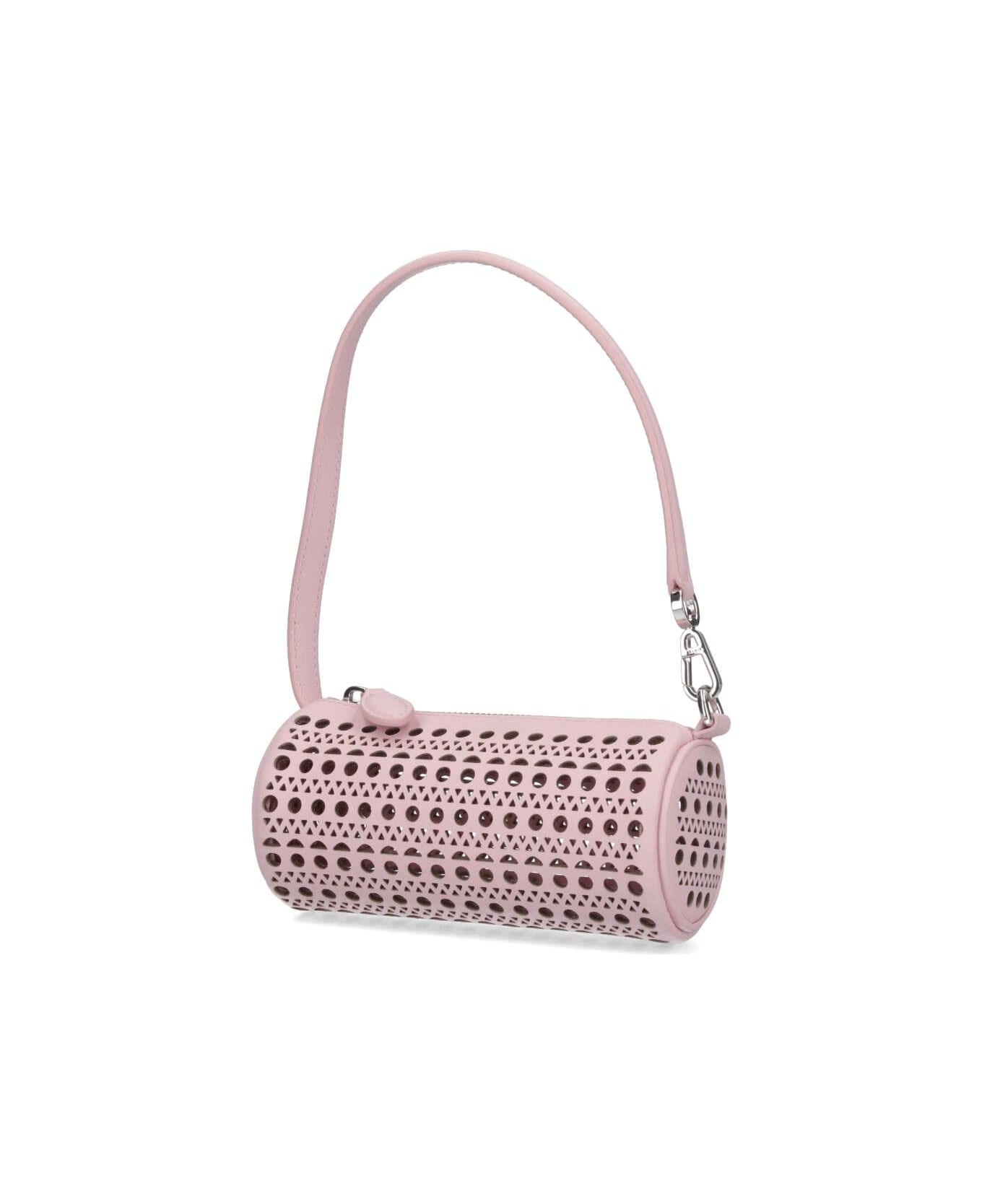Ala 'Tube' mini bag in pink leather with perforated Vienne pattern, top handle, zip closure, and single inner compartment.
