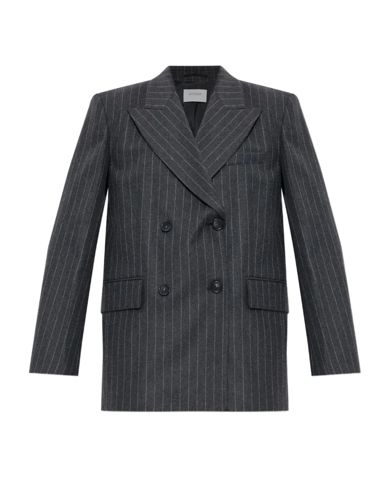 SPORTMAX Belford pinstriped blazer in grey wool, featuring a double-breasted fastening, chest pocket, padded shoulders and peak lapels.