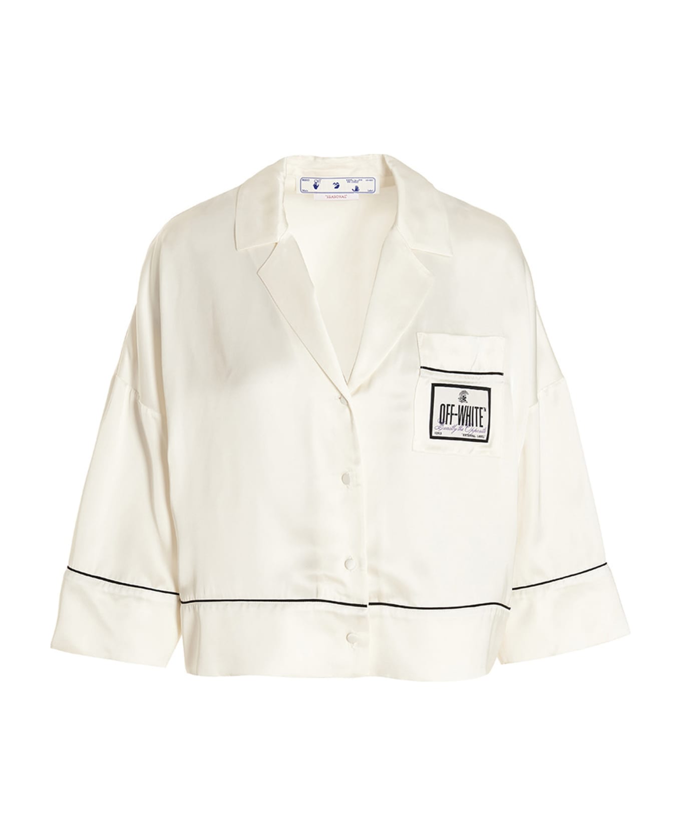 Satin pajama' viscose shirt with contrast piping and a cropped style. Composition: 100% viscose