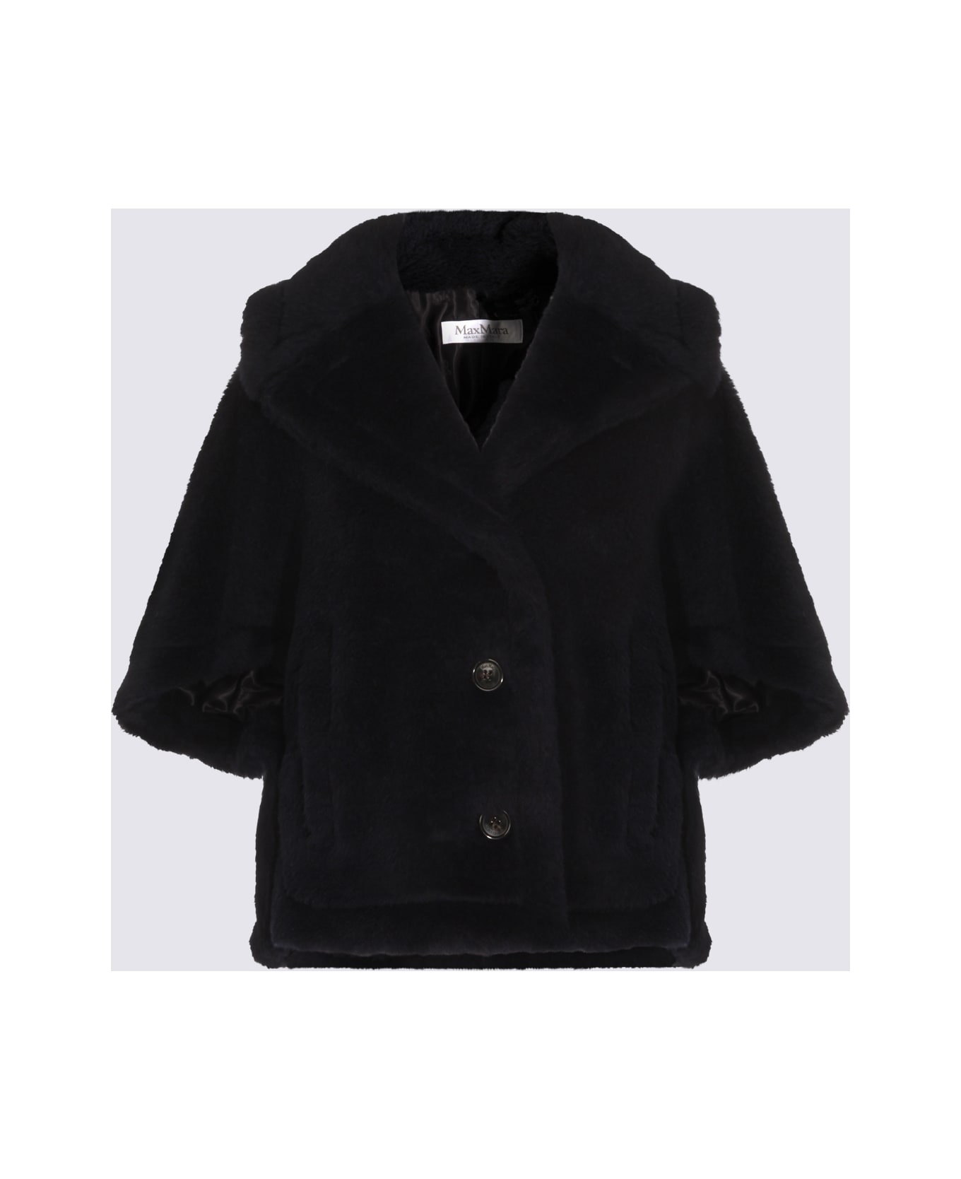 Blue wool blend cape from Max Mara featuring faux fur, wide sleeves, frontal buttons fastening, pockets and regular vestibility. Composition: _, 62% Alpaca, 26% Virgin Wool, 12% Silk