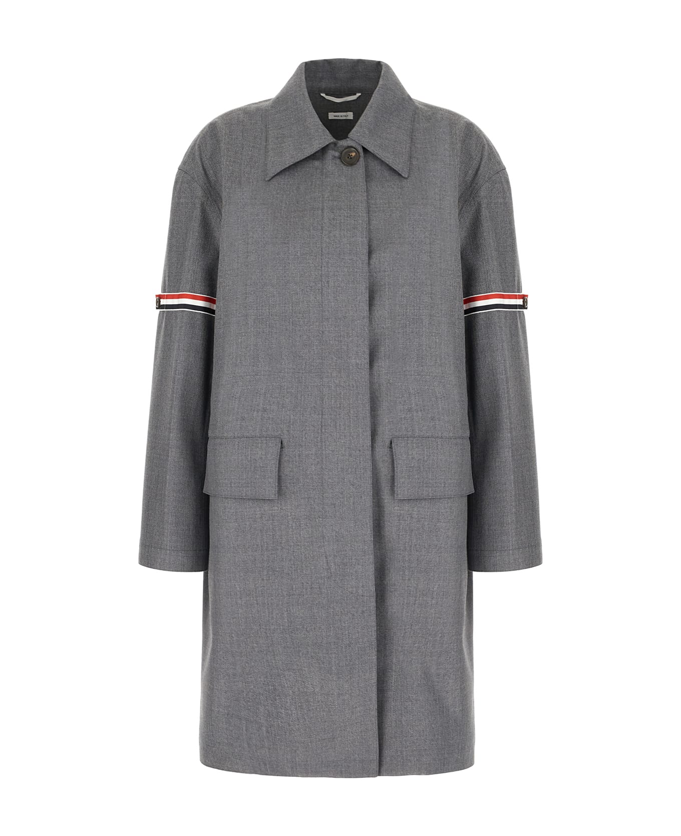 Overcoat realized in wool blend enriched by contrasting inserts on the sleeves and iconic tricolor label at the back. -Pointed collar -Concealed zip with visible buttons closure -Two flap pockets at the front -Central slit at the back -Lined interior with two slit pockets Composition: Exterior: 84% Wool 16% Nylon