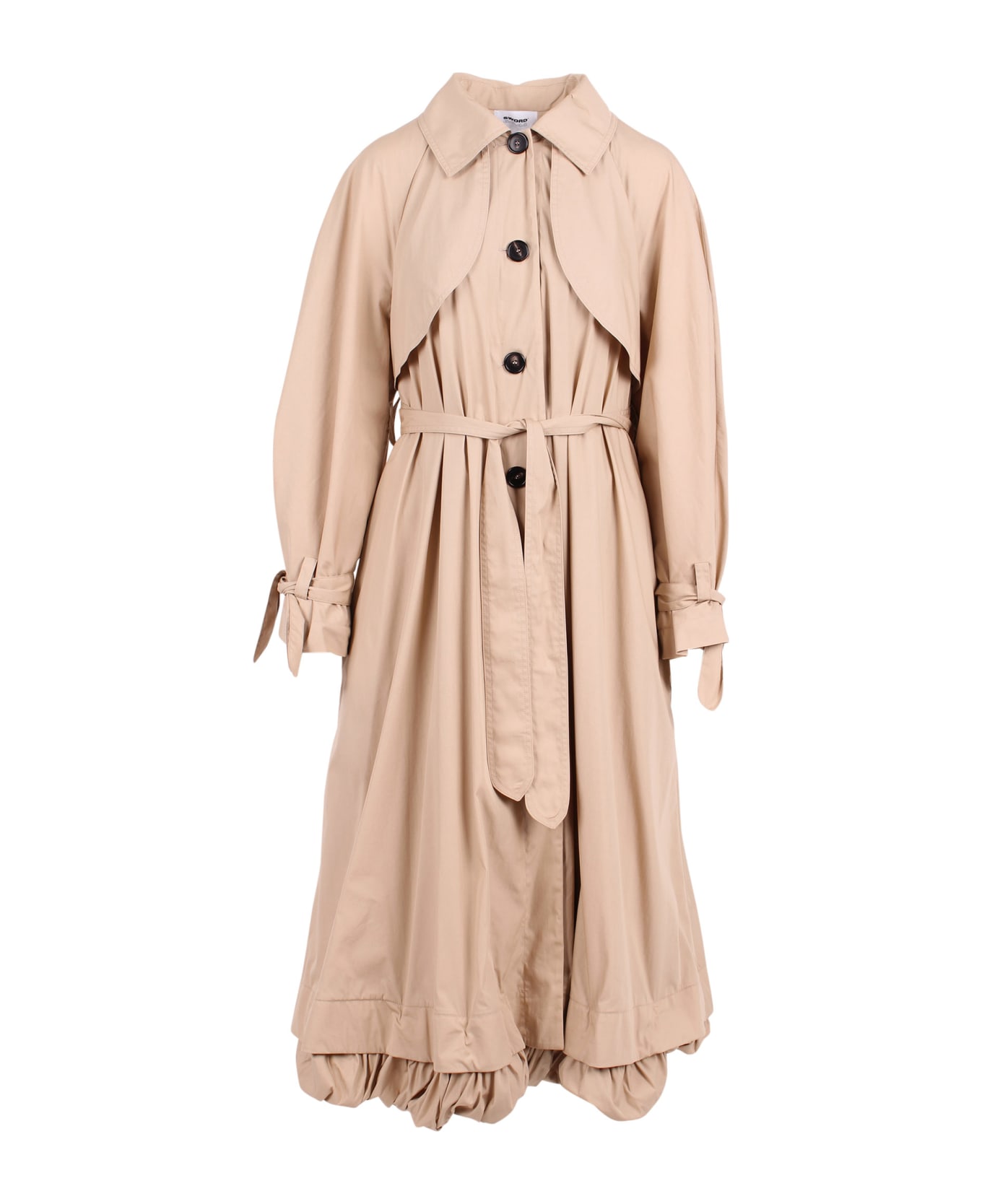 Long trench coat, flared model, wing inserts, shirt collar, long sleeves, matching belt, front closure with buttons, by Patou Composition: 82% Cotone -, 18% Polyamide