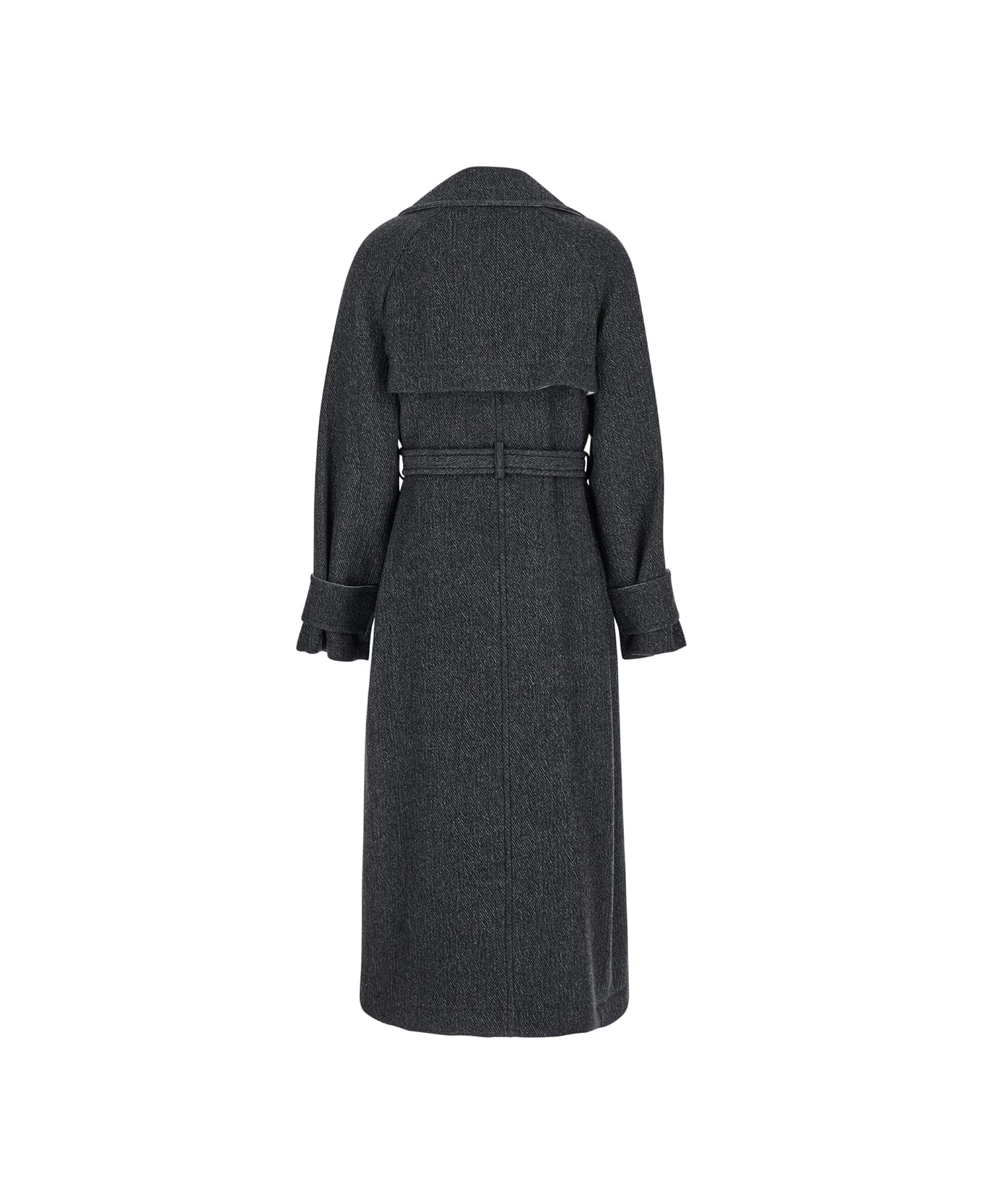Coat Grey Double-breasted Wide notched revers Long raglan sleeves Front button closure Removable belt on the front Two front welt pockets Straight hem Wool blend Regular fit