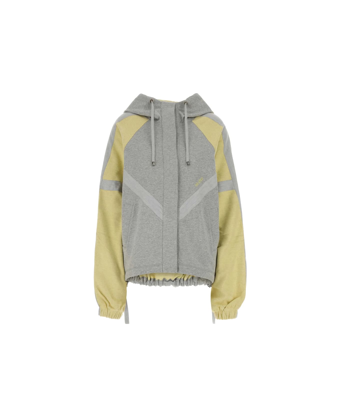 grey/yellow drawstring hem drawstring hood two-tone design long sleeves logo detail