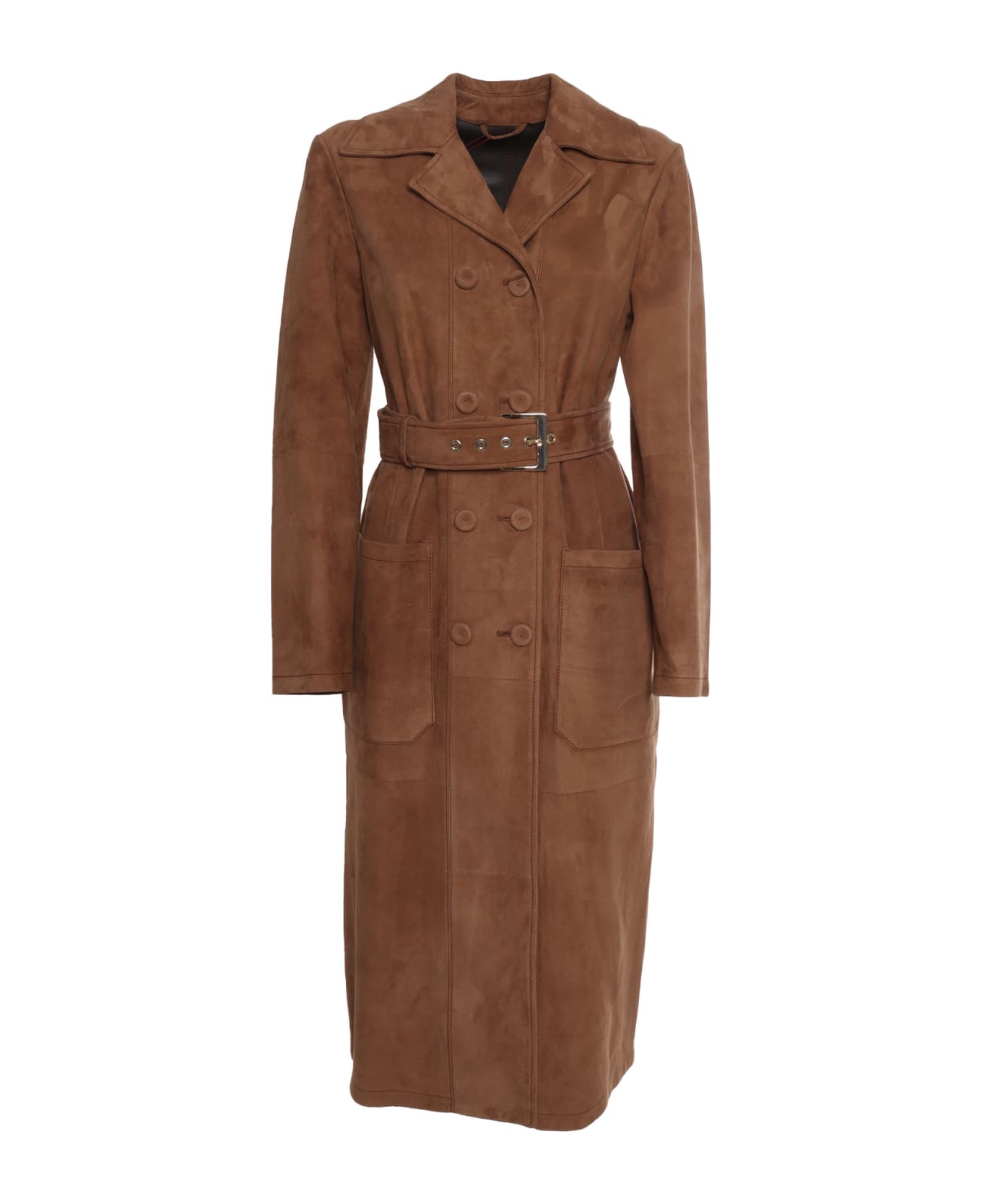 Double-breasted trench coat in lamb suede, closure with covered buttons, matching belt, lapel collar, patch pockets Composition: Leather of Lamb leather Ovis aries aries