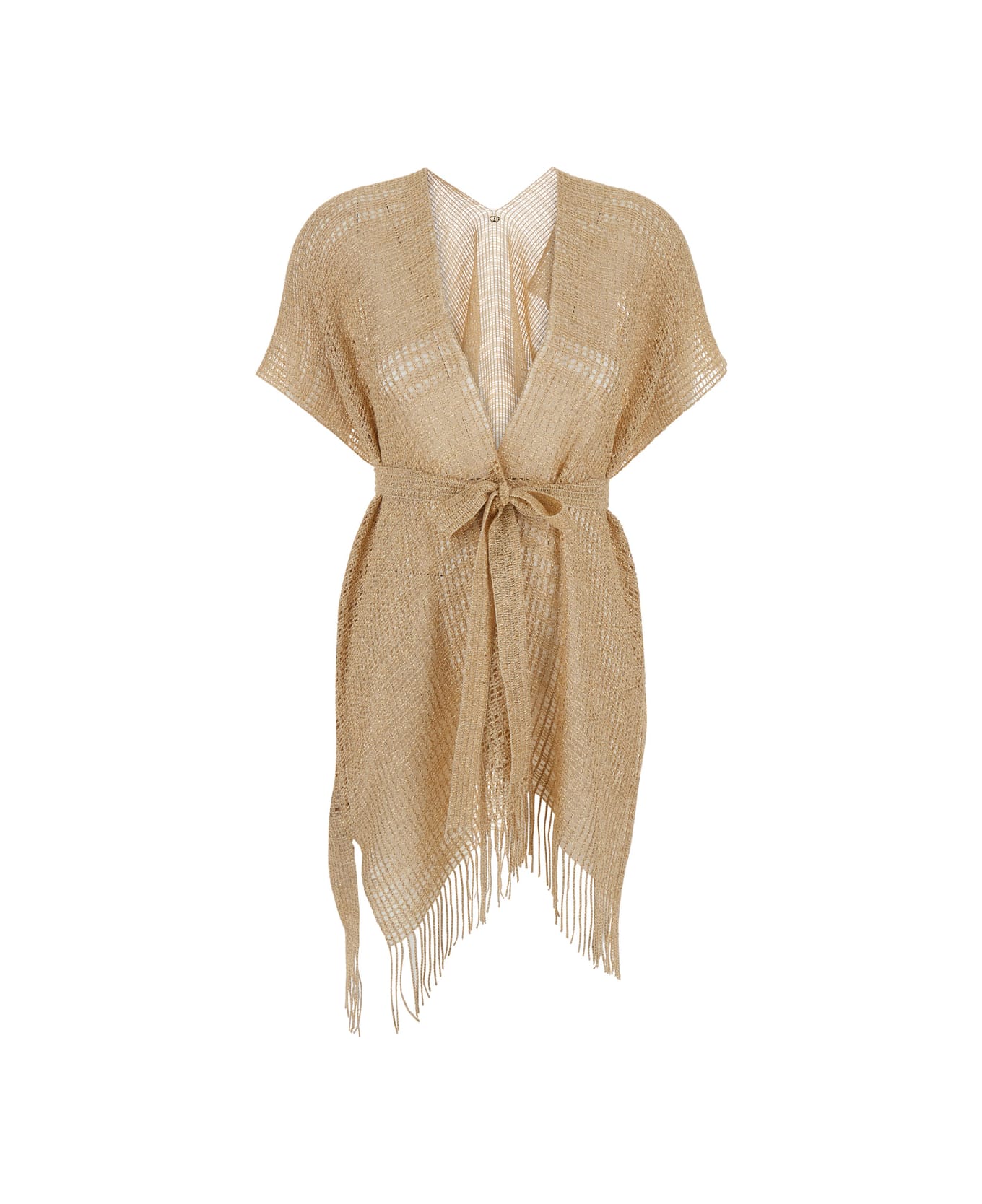 Dress Beige V neck Short sleeves Front cord closure Logo plaque on the rear Fringd hem Viscose blend Relaxed fit