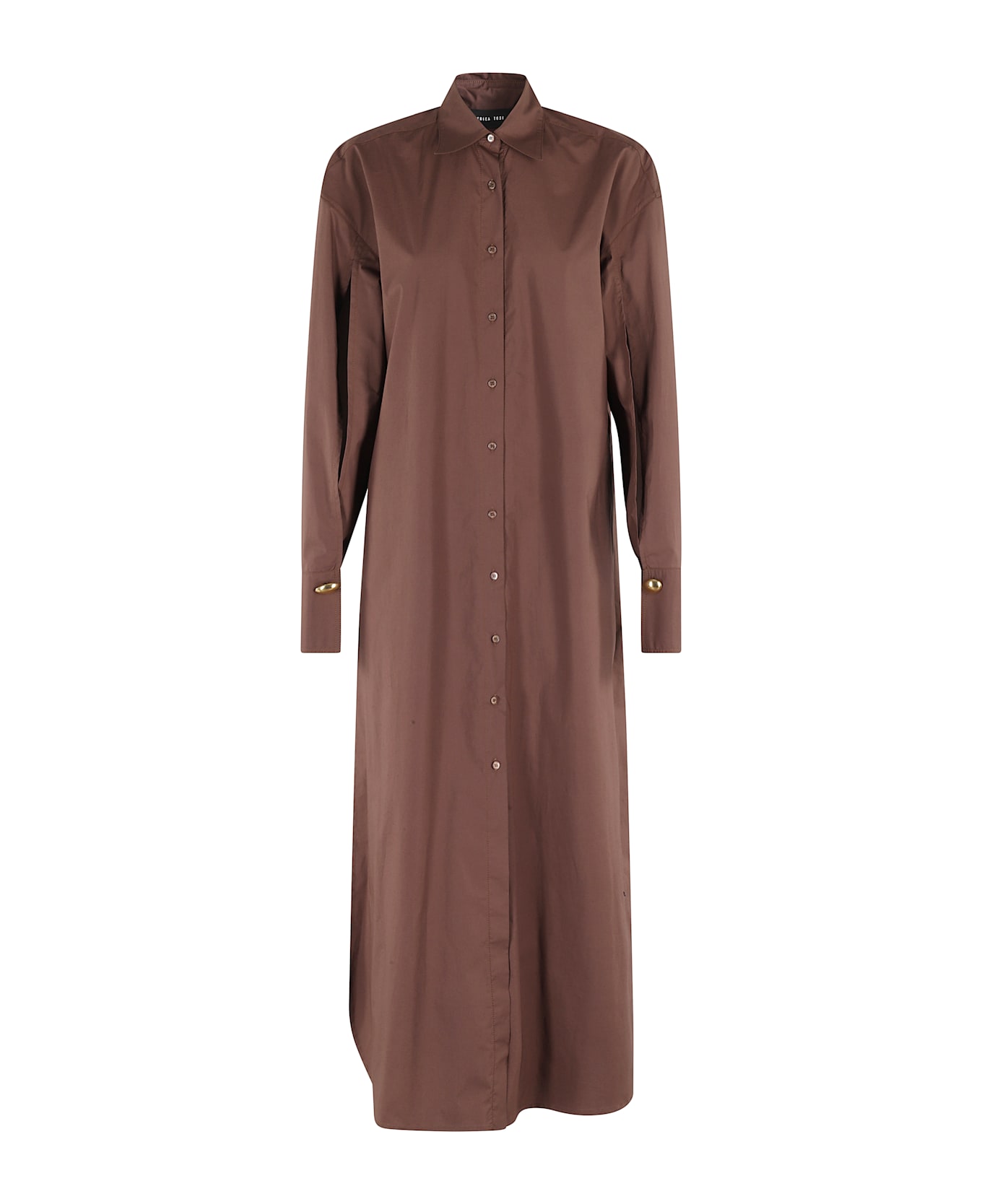 Chemisier dress - Federica Tosi - Mocha color - Stretch cotton fabric - Classic collar - Long sleeve with cuff and jewel button - Side slits - Front button closure - Over fit