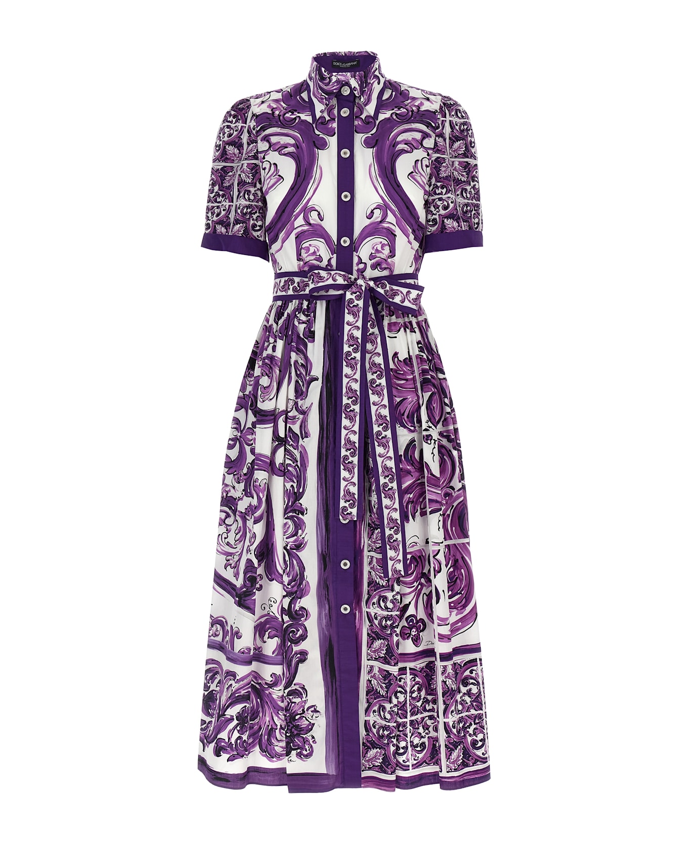 All over 'Maiolica' print cotton poplin dress, chemisier model, front button closure, pockets, short sleeves with turn-up on the cuffs, full skirt, unlined. The differences in print placement you might find on this product is a characteristic of Dolce&Gabbana's Handmade products. A peculiarity that makes each garment or accessory unique and exclusive.