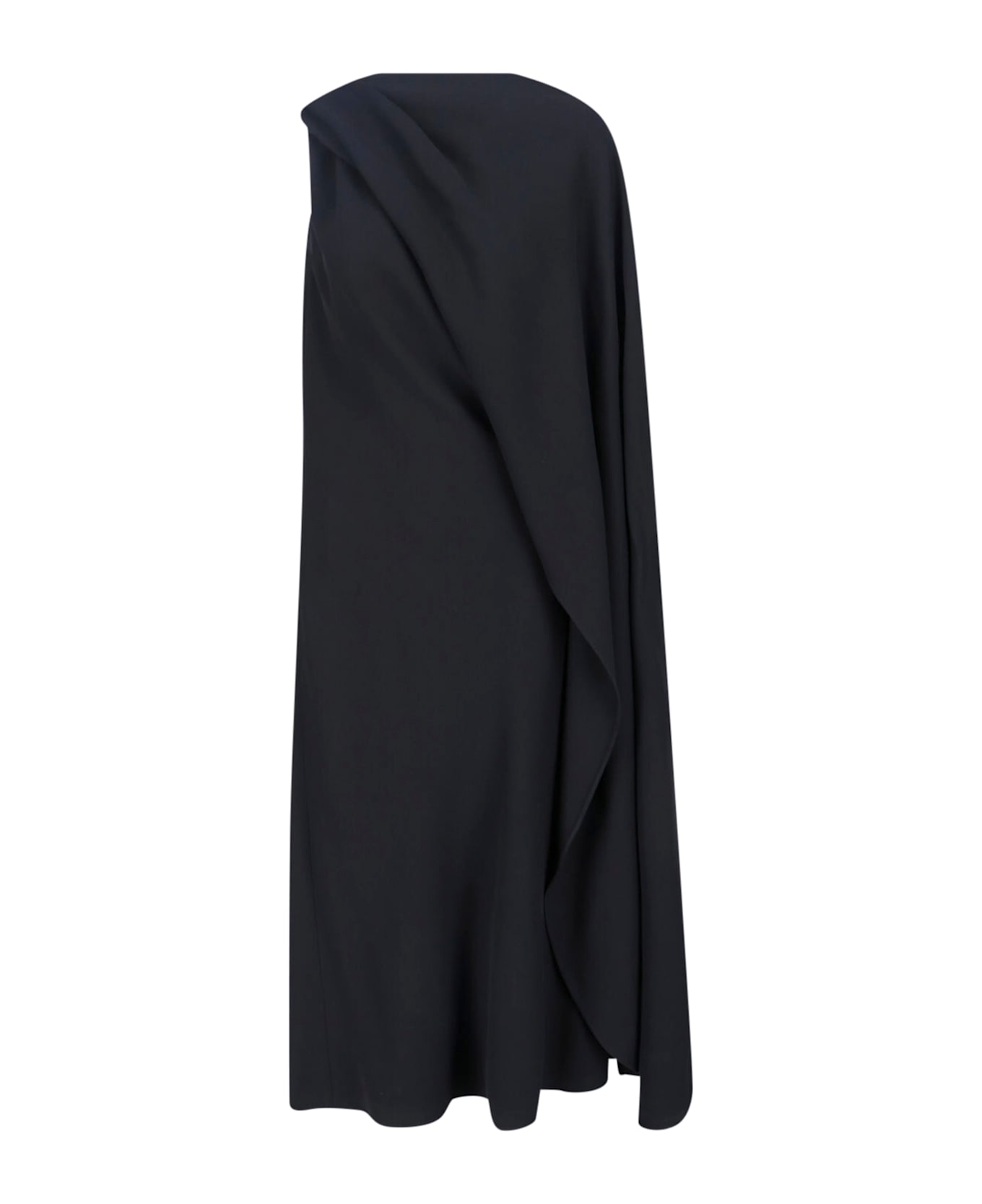 Balenciaga maxi dress in a wool and silk blend, one-shoulder design, front draping, side zip closure.