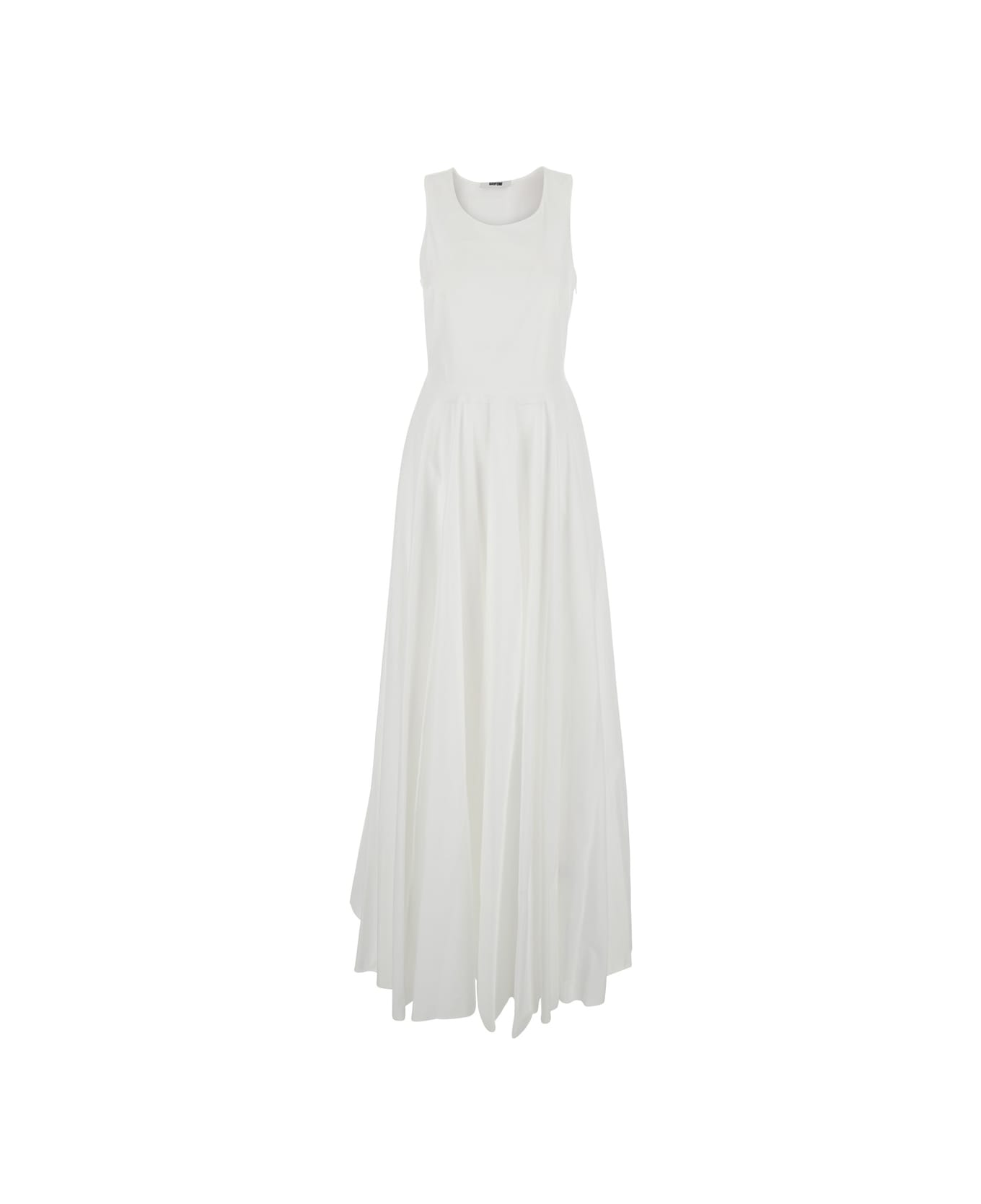 White Long Sleeveless Dress With Draped Details In Cotton Woman
