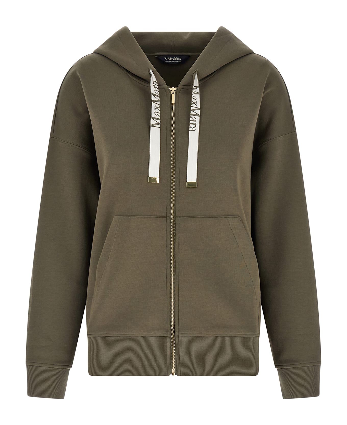 'SmmJour' tech cotton jersey hoodie with front zip closure, pockets, long sleeves with cuffs and dropped shoulders, and headband. Composition: 78% cotton, 22% polyester