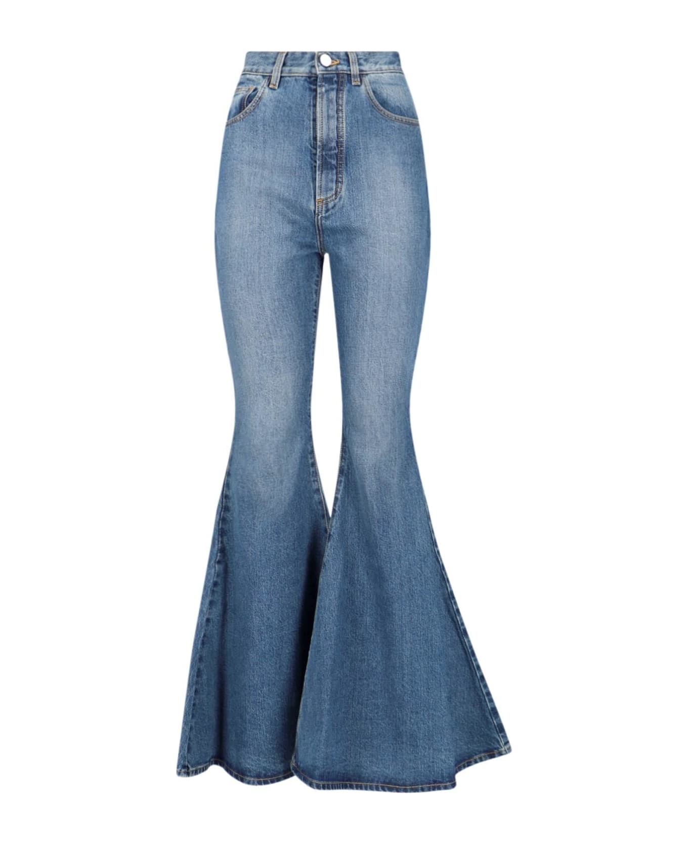 Ala blue cotton flared jeans, belt loops, button and zipper closure, five pockets, contrast stitching, and flared leg.