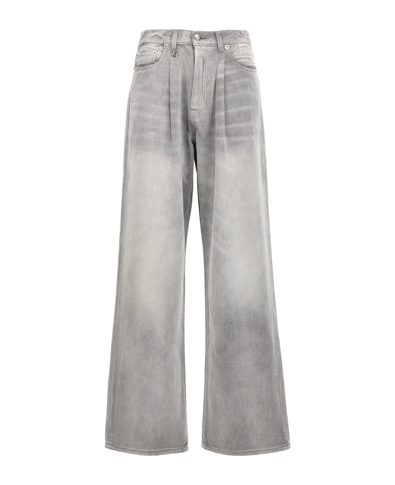 Damon Pleated Wide Leg' cotton and linen denim jeans, wide leg with front pleats, zip and button closure, five pockets, leather logo label. Composition: 80% cotton, 20% linen