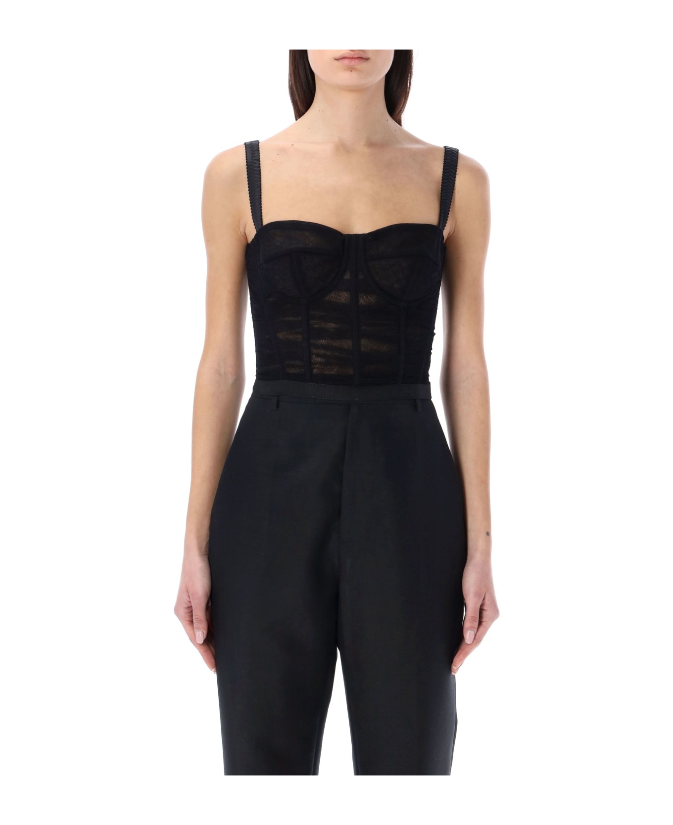 Cotton Blend Draped Tulle Corset By Dolce&gabbana. Featuring: