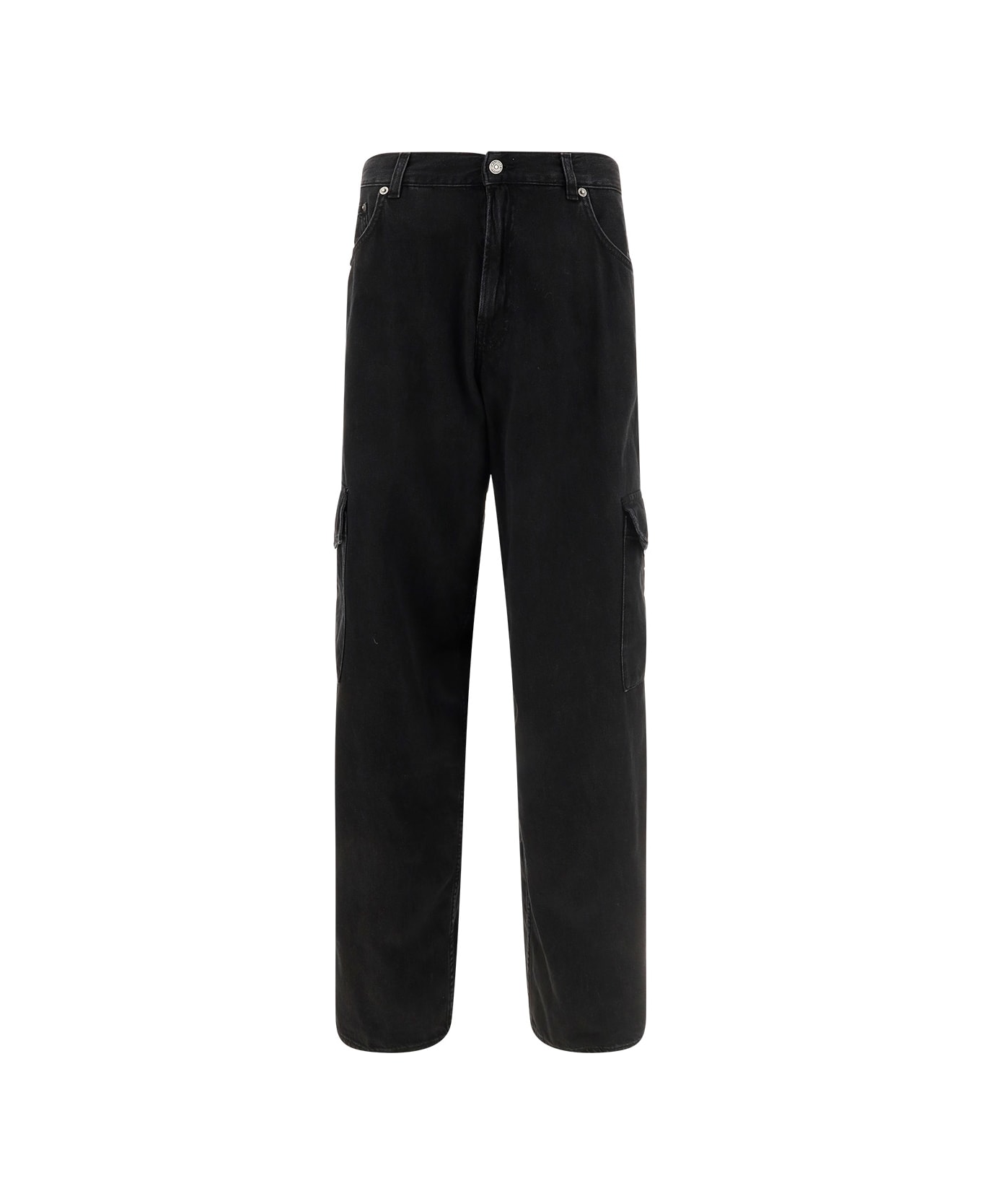 Cotton cargo bethany jeans by haikure, front button and zip fastening, five-pocket cargo model, two side cargo pockets, waist belt loops, leather patch with iconic brand signature press-stamped on the back.