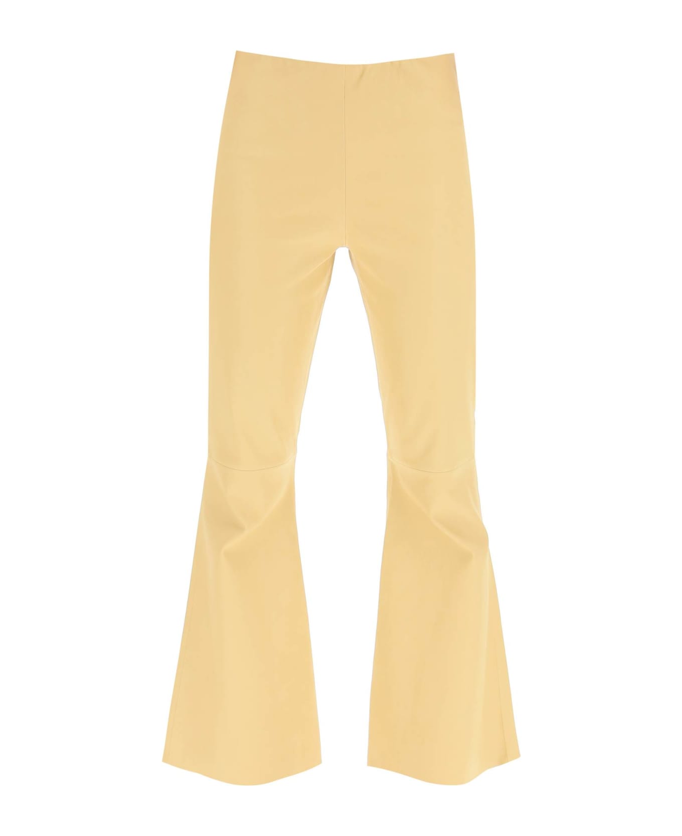 Cropped lambskin pants By Malene Birger bonded with stretch cotton inside, featuring a slim fit with flared hem. Elasticated waist, laser-cut hem. The model is 177 cm tall and wears a size IT 38.
