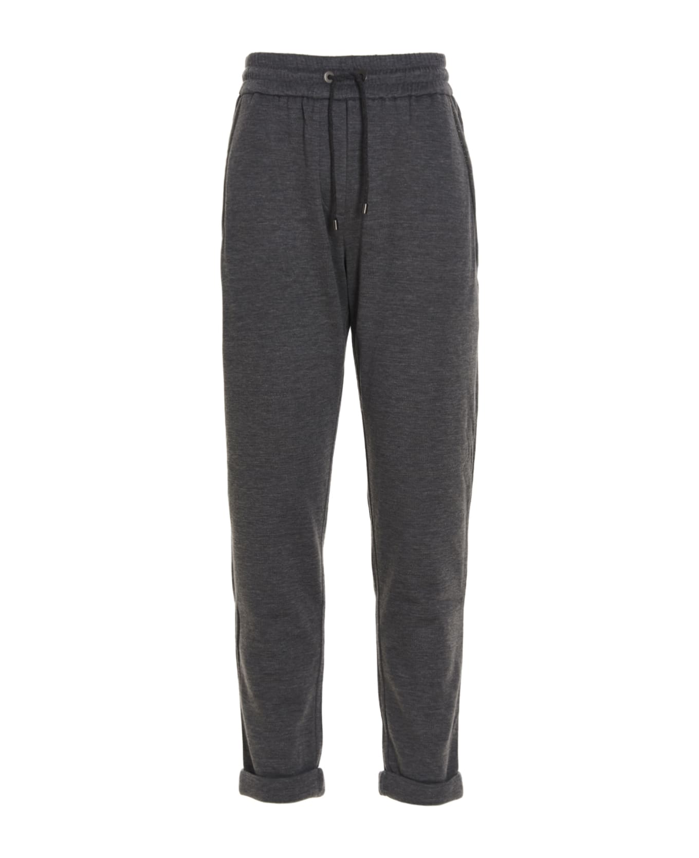 Jersey joggers with drawstring elastic waistband, 'Monile' pocket trims and turn-up hem. Composition: 67% cotton 31% silk 2% polyamide