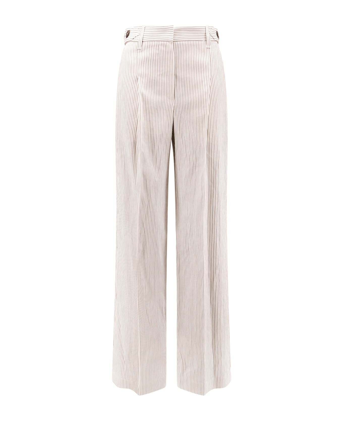 Closure with zip, metal hook and button High Waist with lateral adjustable straps Two slant pockets on the front and two welt pockets on the back Made in Italy 56% linen 42% cotton 2% elastane SKU: MH543P8817_C1080