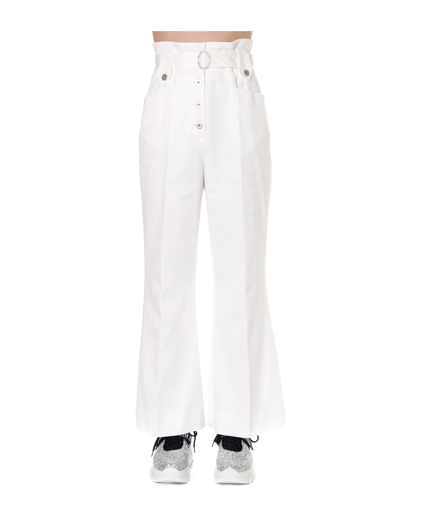 White White Cotton Tailored High Waist Pants from Miu Miu