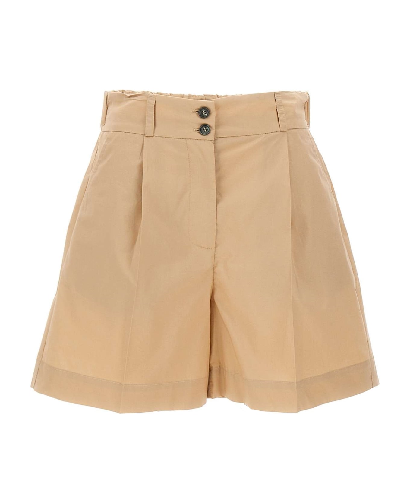 Woolrich woman cotton poplin shorts, warm sandy beige, elasticated waist, button and zip fastening, waist with belt loops, two side welt pockets, regular fit, perfect for summer season.