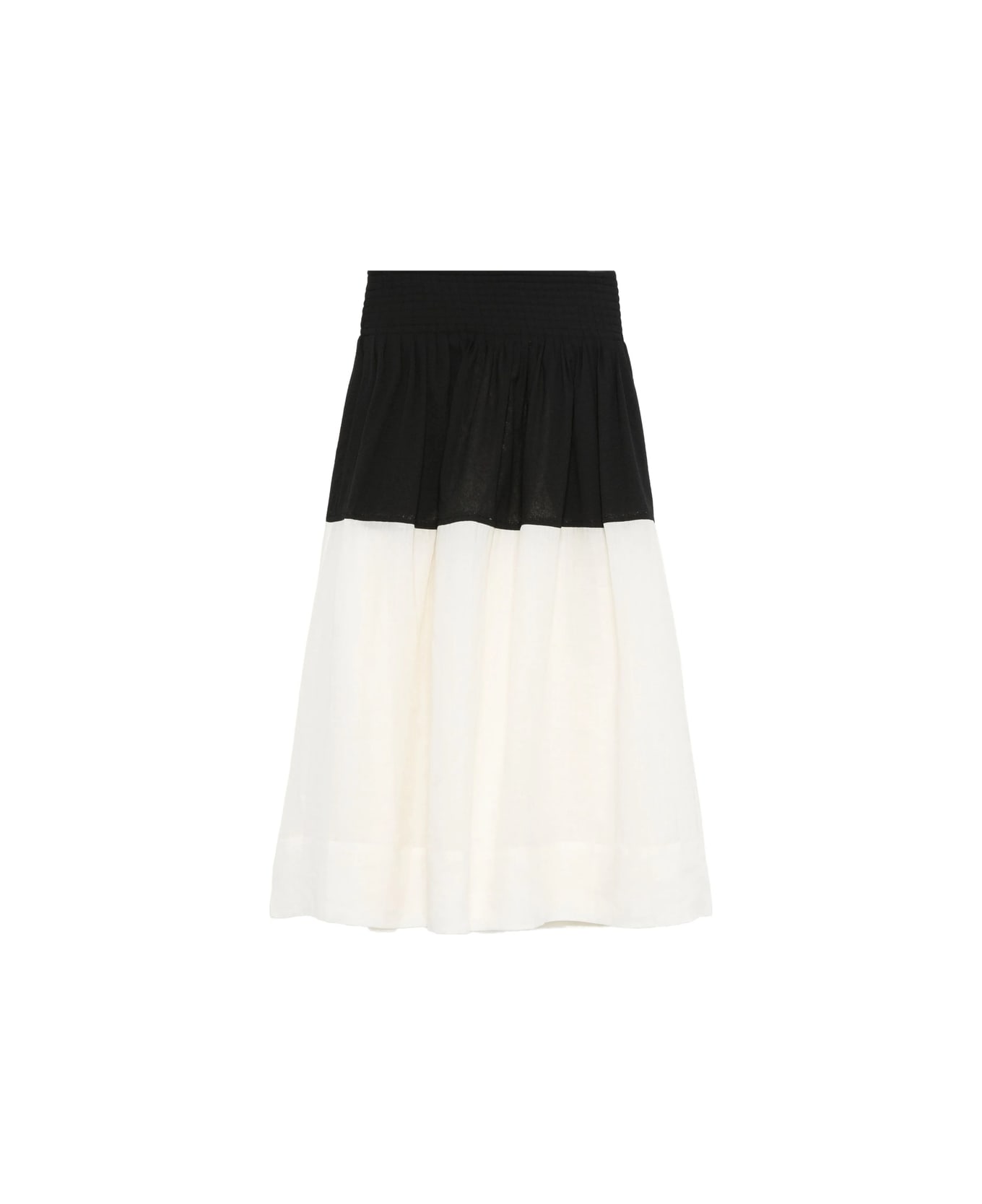 black off-white elasticated waistband gathered skirt two-tone design A-line shape straight hem
