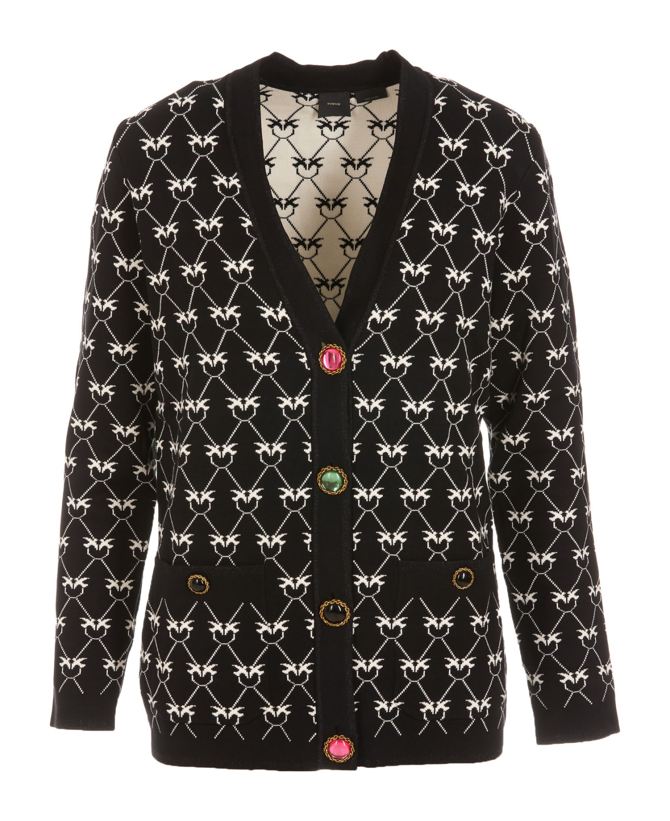 cardigan with frontal buttons closure, v-neck, all over logo, frontal pockets