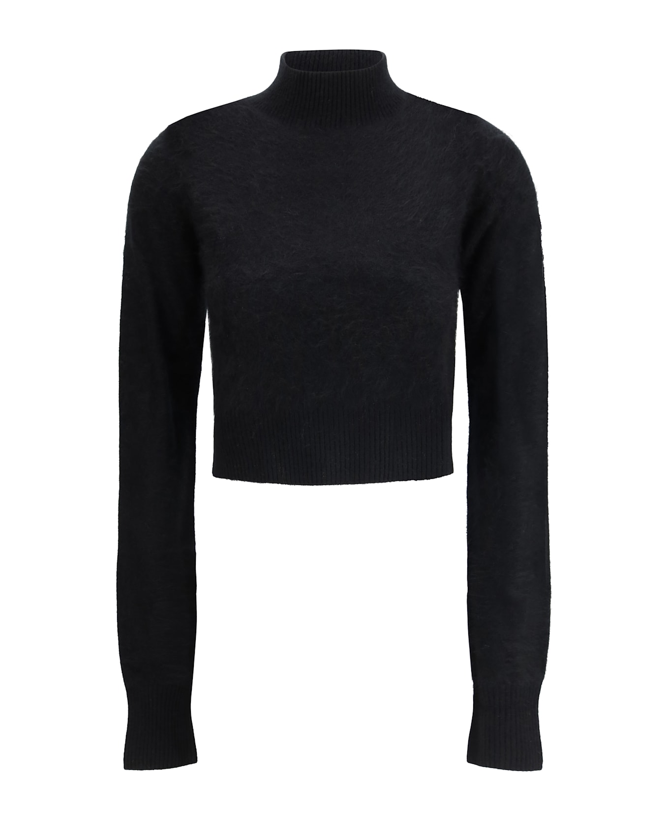The pure cashmere cropped sweater by sportmax is a feminine and sophisticated piece designed to enhance the silhouette. with a fitted fit and waist length, it features a delicate slightly raised collar and ribbed trim on the cuffs, hem and neckline. soft and snug, it is ideal for discreet and timeless elegance.
