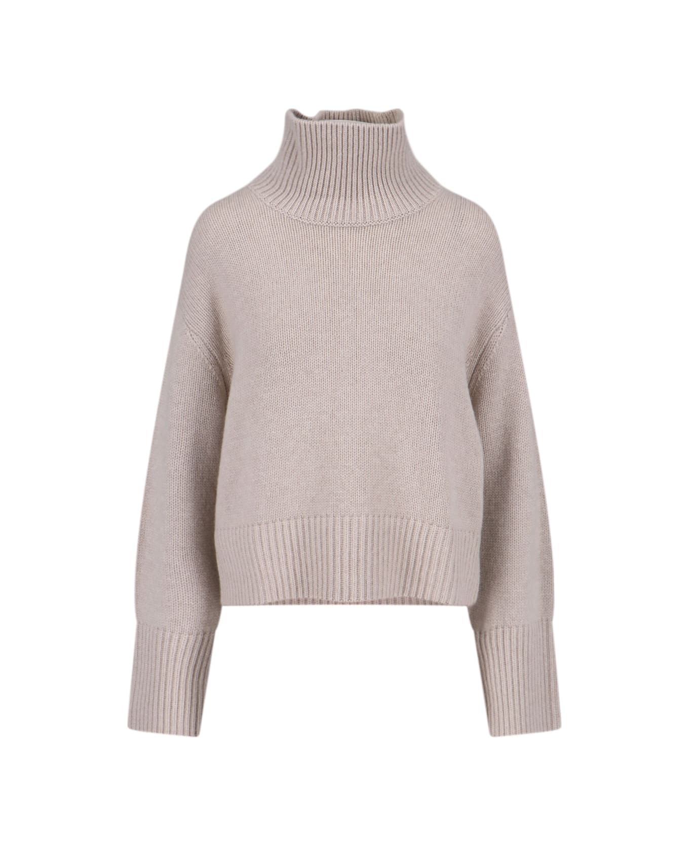 Lisa Yang 'Fleur' beige cashmere sweater knitted, high neck, ribbed trim, dropped shoulders, straight hem.