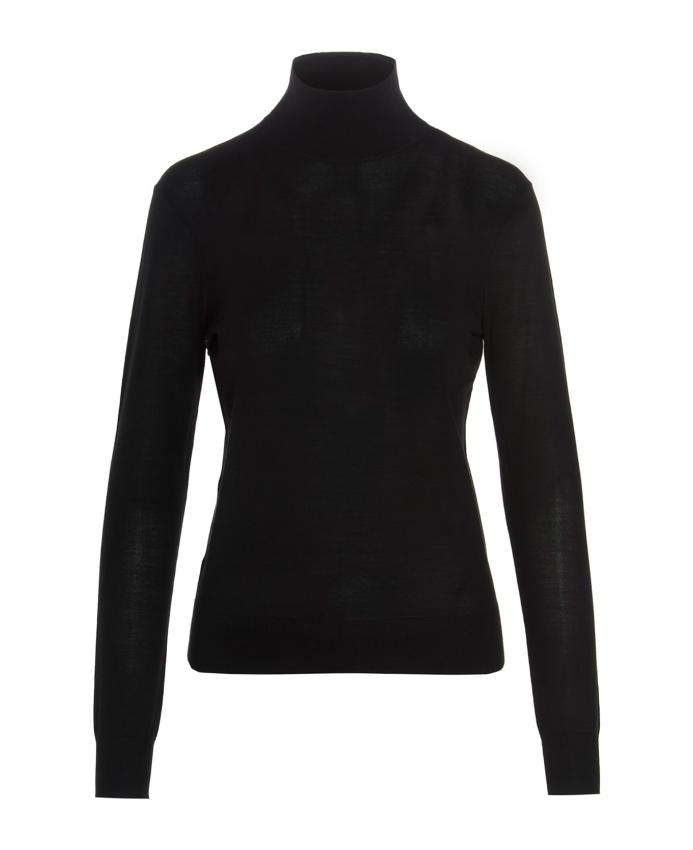 Wool blend sweater with high neck, long sleeves with cuffs.