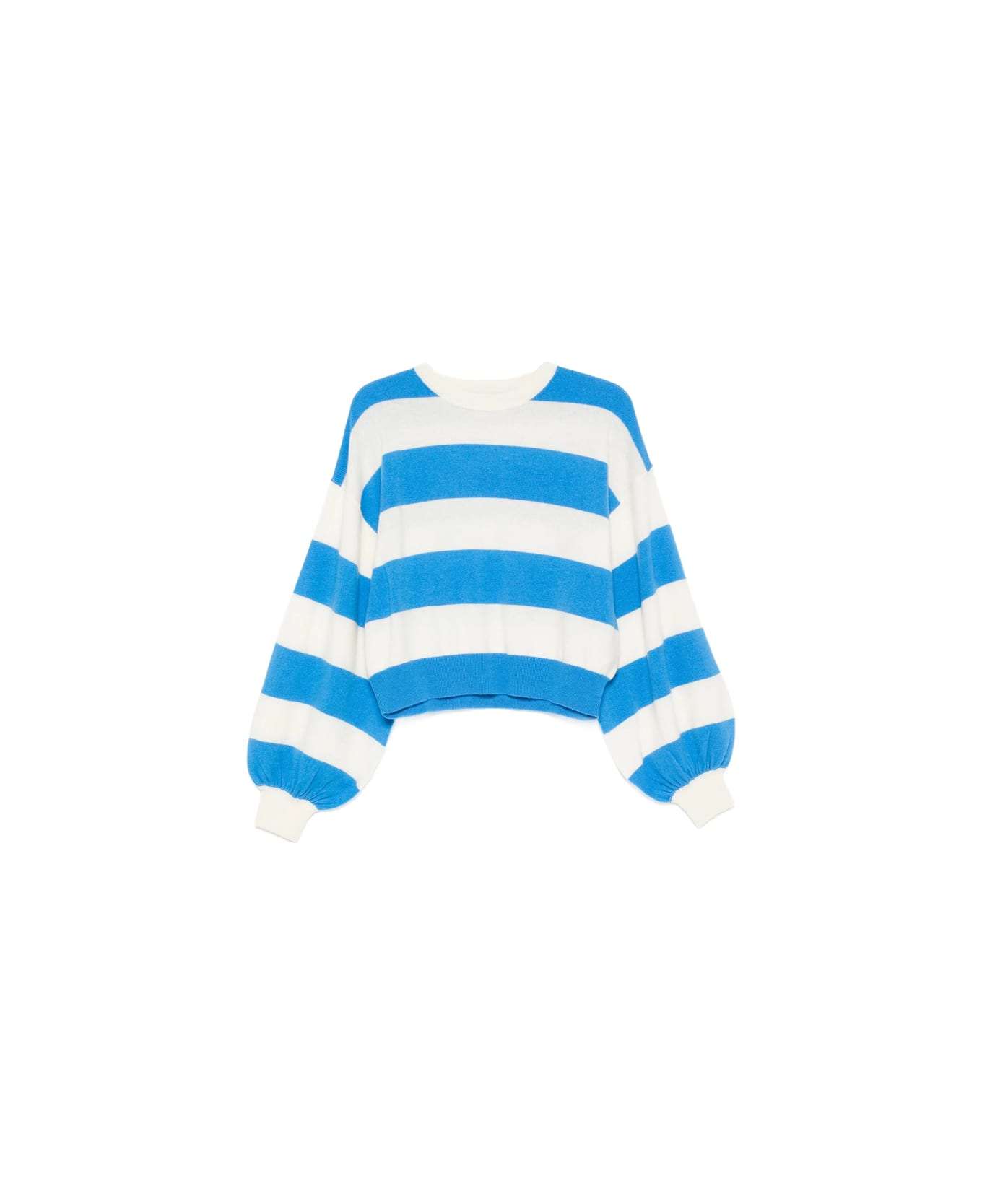 blue white stripes balloon sleeves round neck
