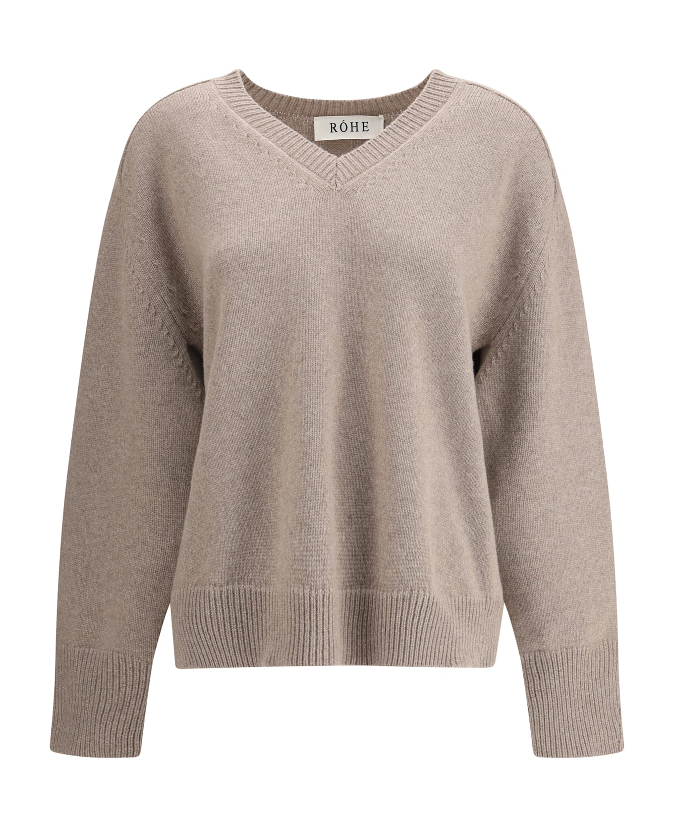The v-neck jumper by rohe made from a fine blend of wool and cashmere, combines comfort and sophistication with a contemporary twist. featuring a ribbed v-neckline, it has ribbed hem and cuffs with slits that add movement to the silhouette. the cut-out detail at the sleeve junction gives the design an unexpected and modern element, perfect for a minimal yet refined style.