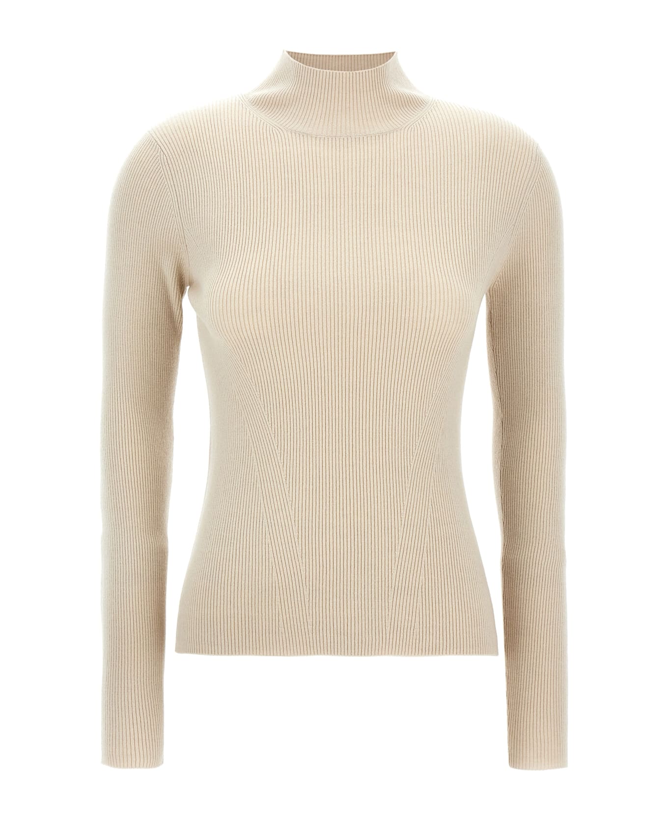 'Zanzara' ribbed wool blend sweater with high neck, long sleeves.