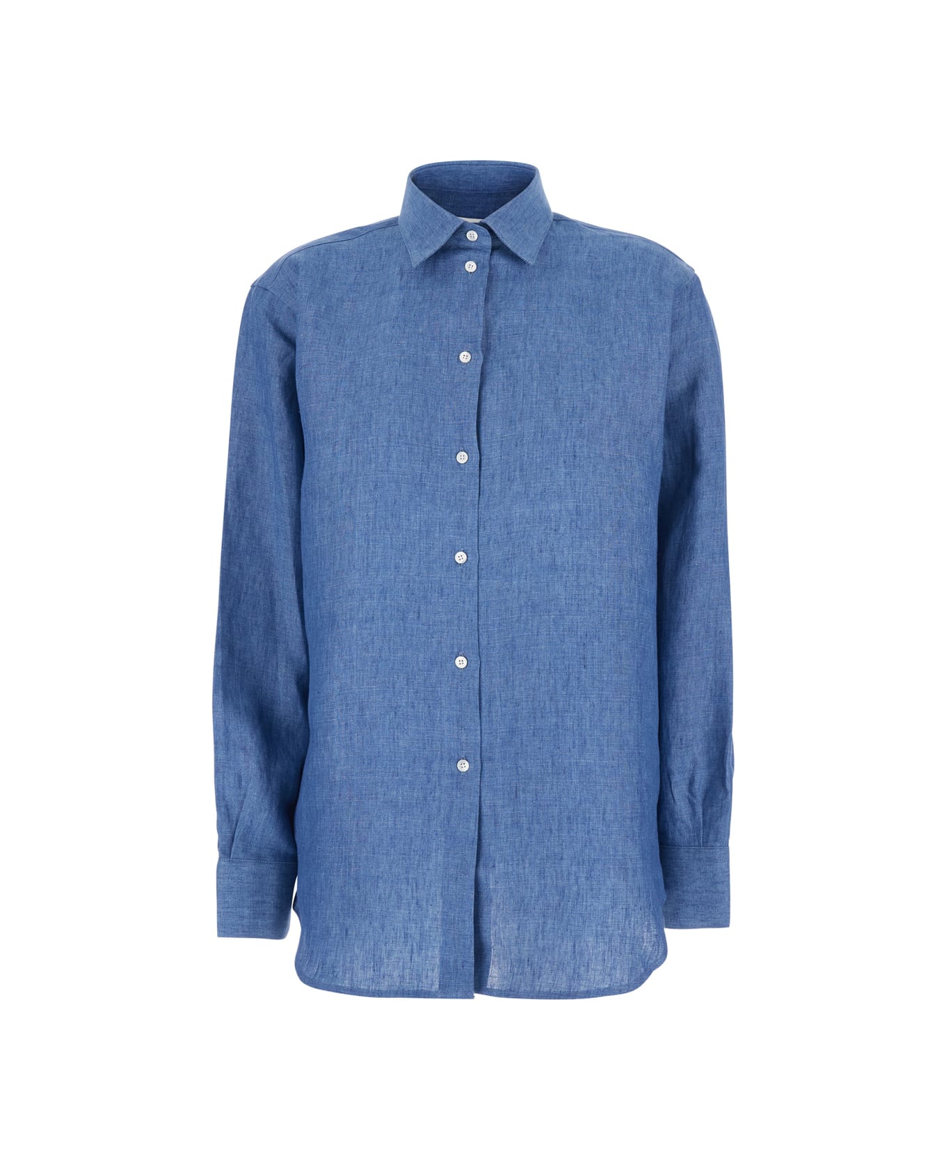Blue Shirt With Classic Collar And Button Closure In Linen Woman
