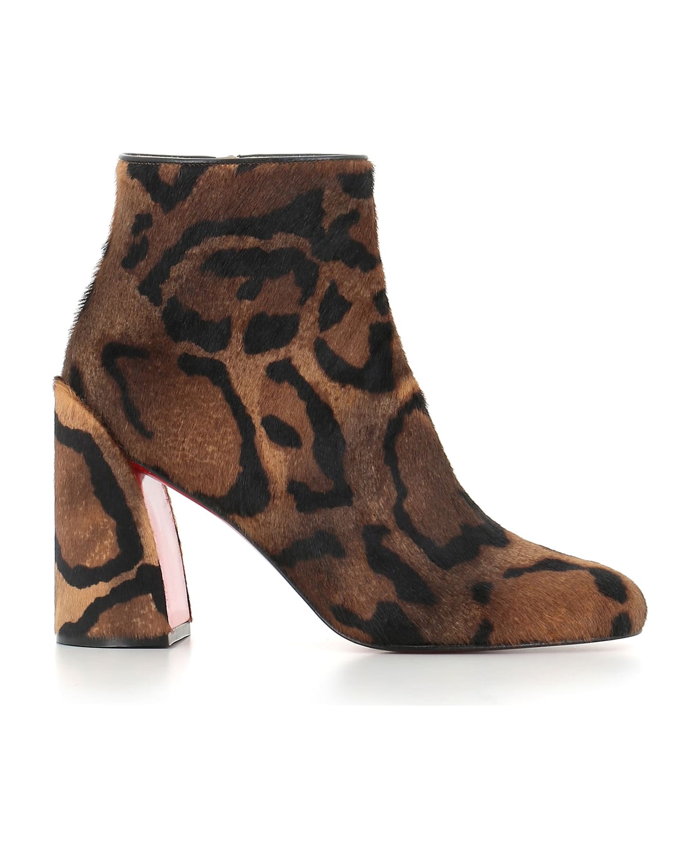 Spotted pony-effect printed leather boots by Christian Louboutin, featuring by a round toe and side zip clousure. Lined interior. Leather sole with half rubber. Heel: 10 cm