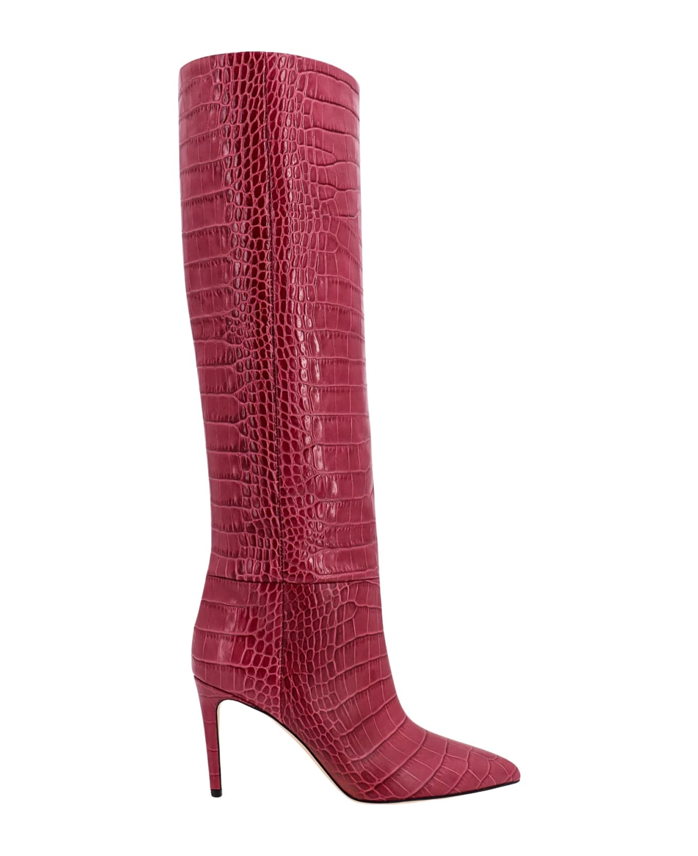 - Straight Leg - Croco Effect - Stilletto Heel - Made In Italy - Leather - External : Leather