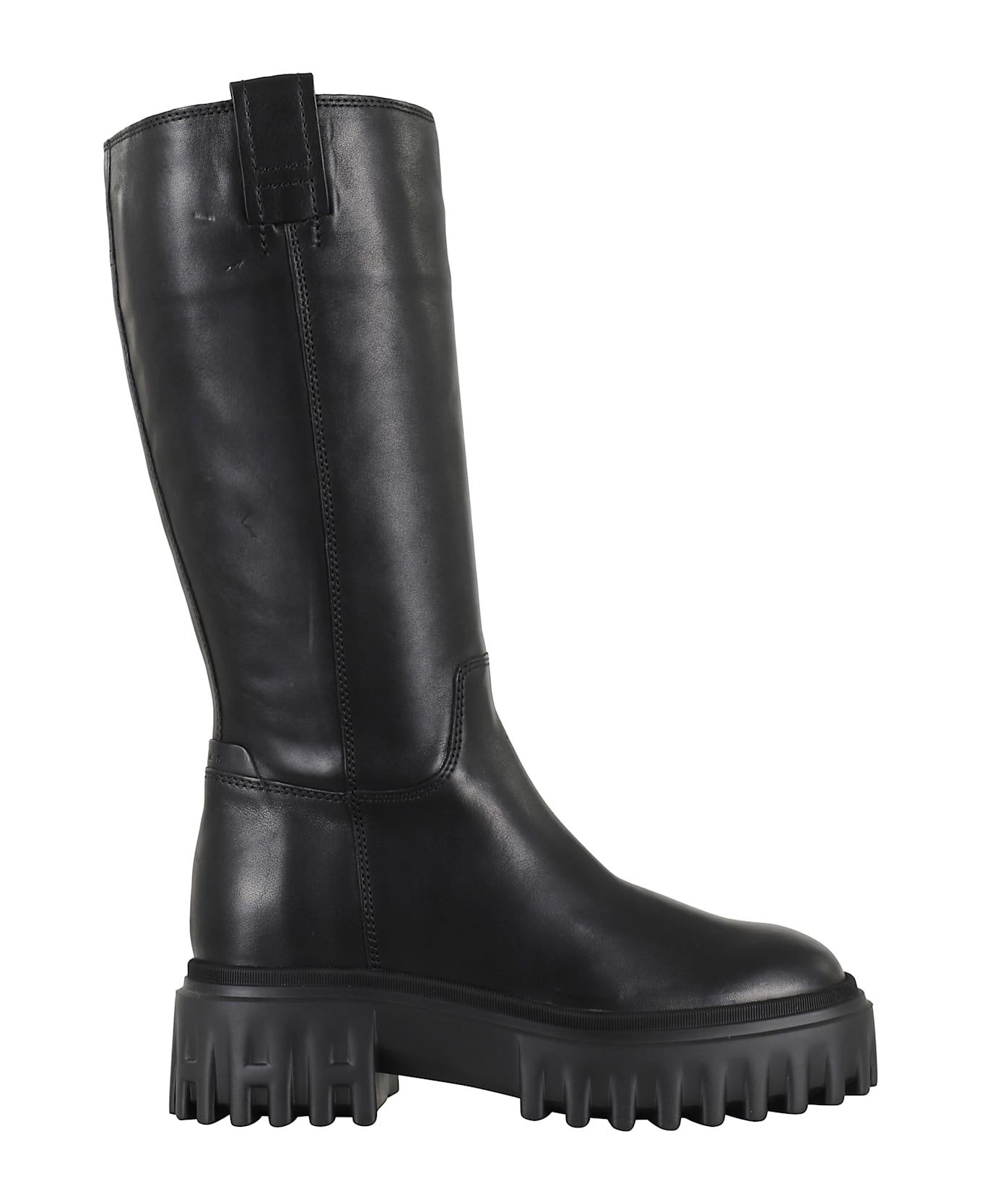 H700 boot - Hogan - black color - leather upper - rubber lug sole - round toe - side zipper