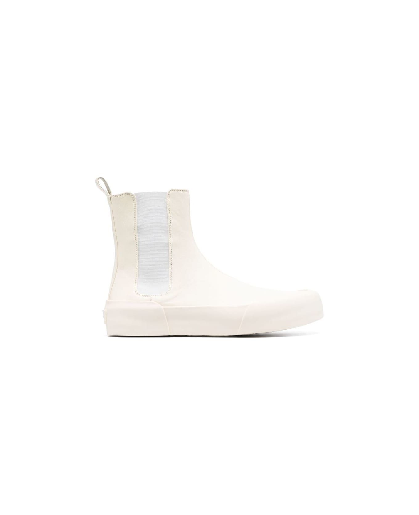 off-white calf leather panelled design logo patch to the rear elasticated side panels logo pull-tab at the heel almond toe branded insole flat rubber sole