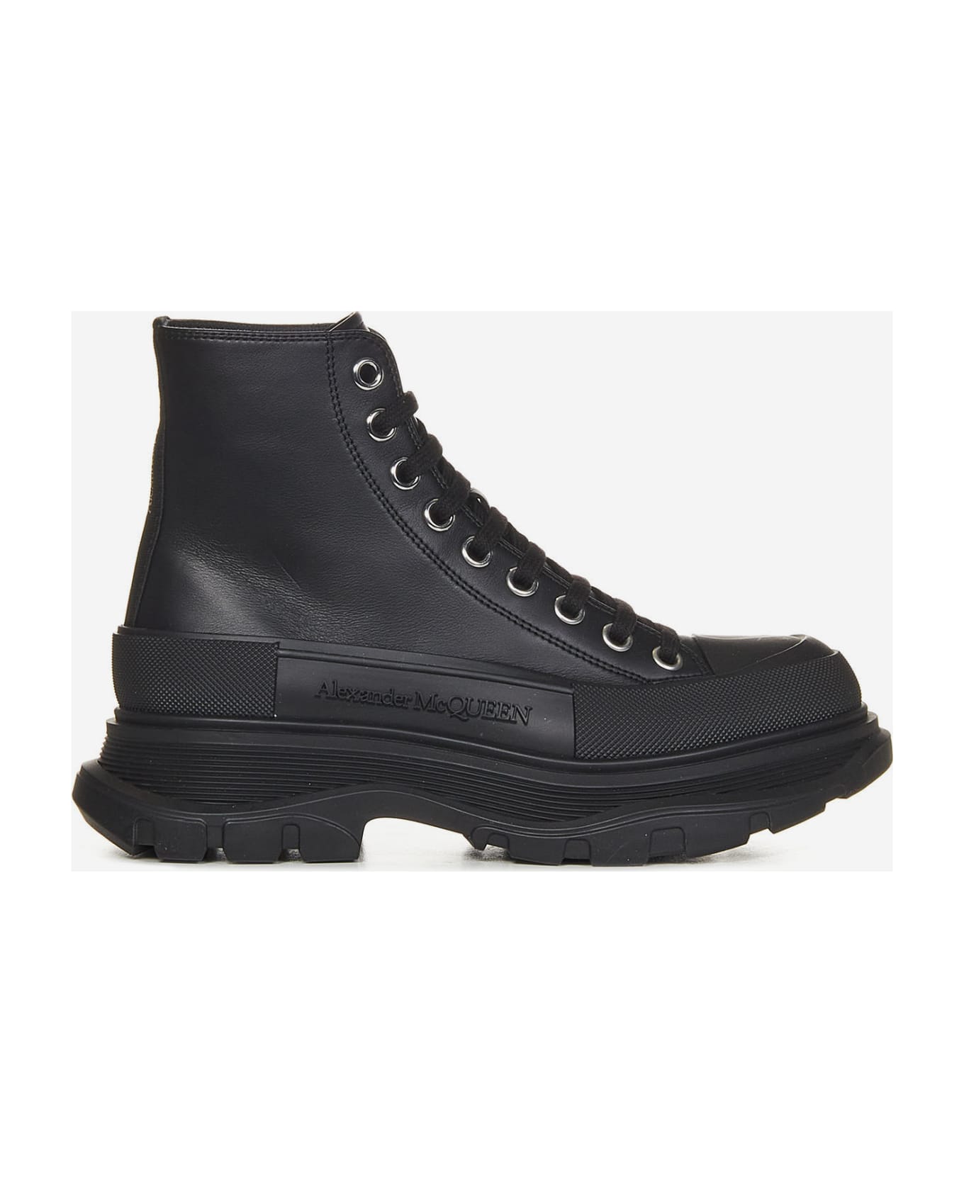 Textured rubber wrap at the upper base with tone-on-tone embossed Alexander McQueen signature