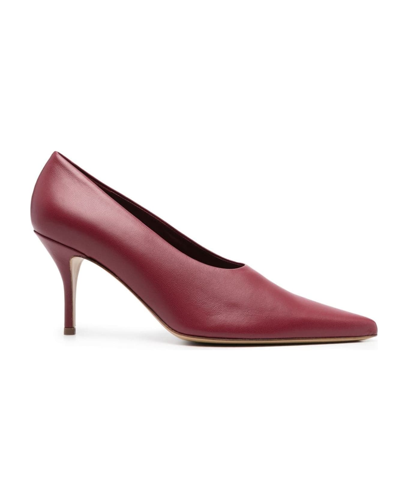 Bordeaux red calf leather pumps, smooth grain, slip-on style, 80mm high stiletto heel, pointed toe, branded leather insole, leather sole Composition: Calf Leather, 100%